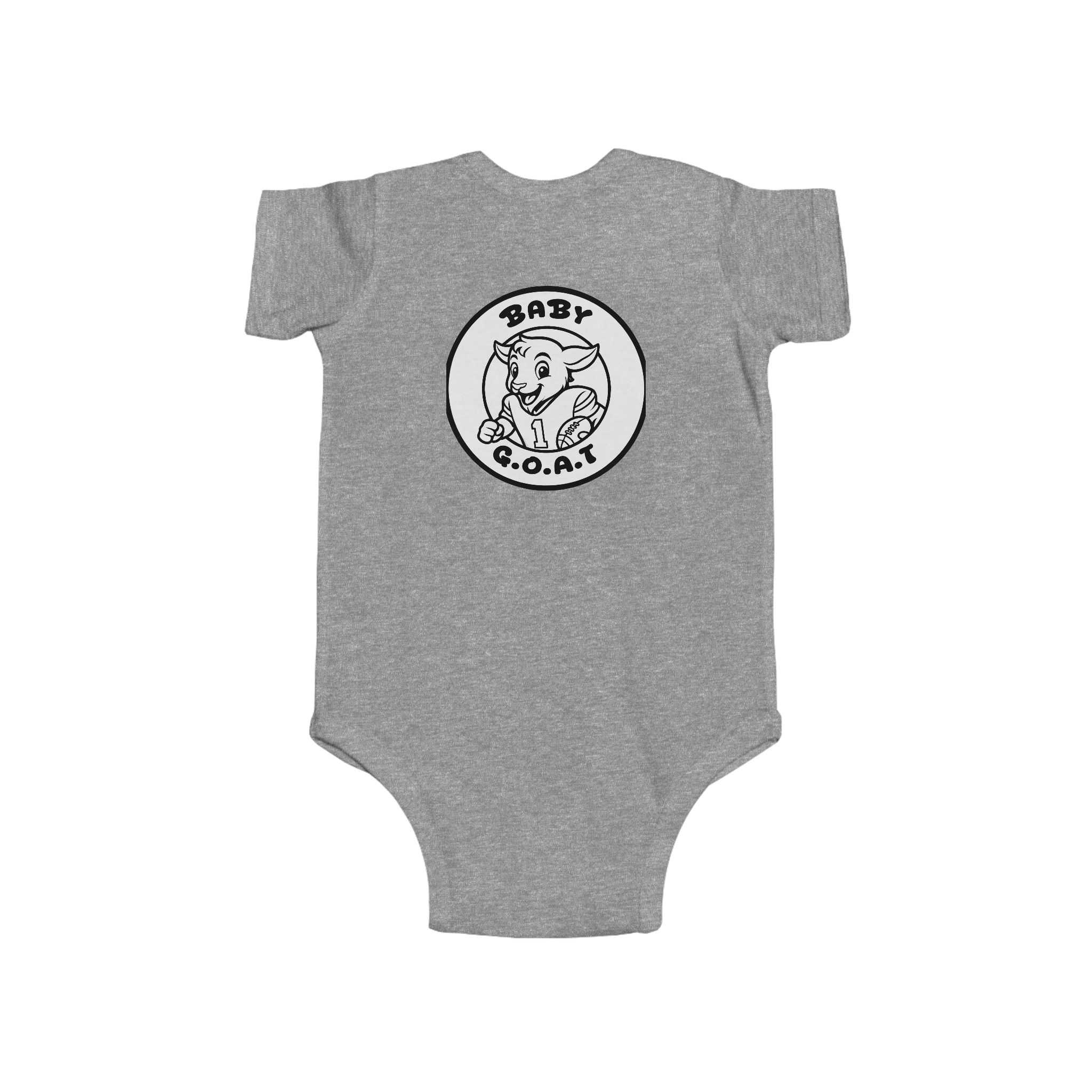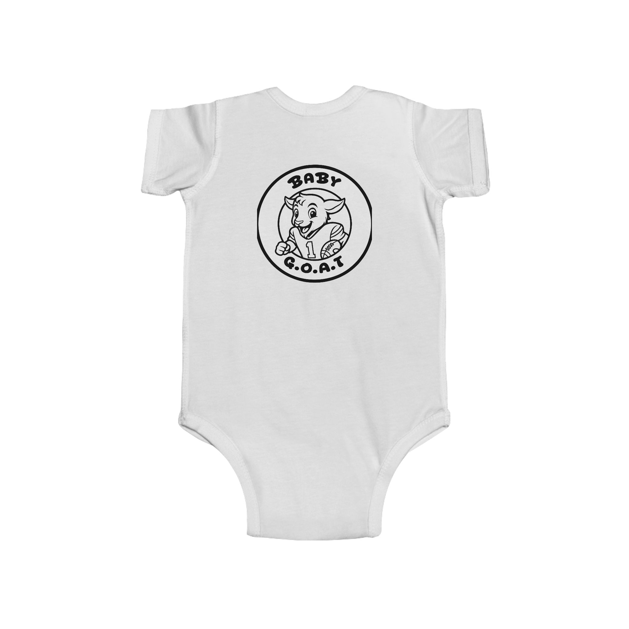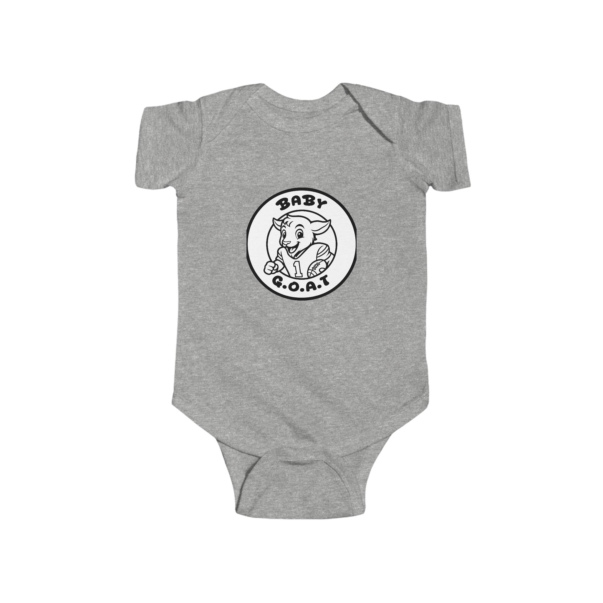 Soft, lightweight baby bodysuit with a playful “Baby G.O.A.T.” line-drawn design centered on the chest. The gentle fabric and ribbed neckline make diaper changes easy, while matching snaps keep the closure secure without pinching. It feels breathable against tiny skin and holds its shape wash after wash — a casual everyday layer that brings a little humor and personality to nap time and stroller outings.