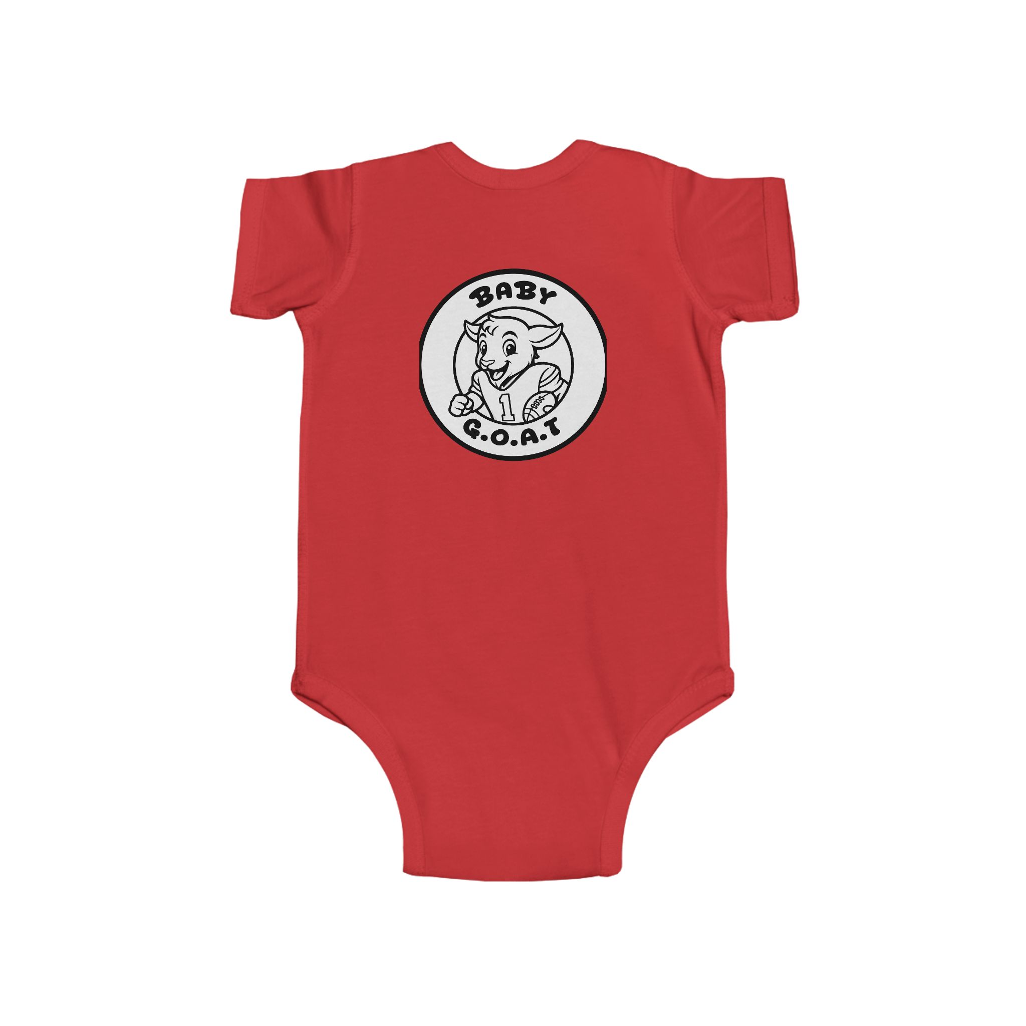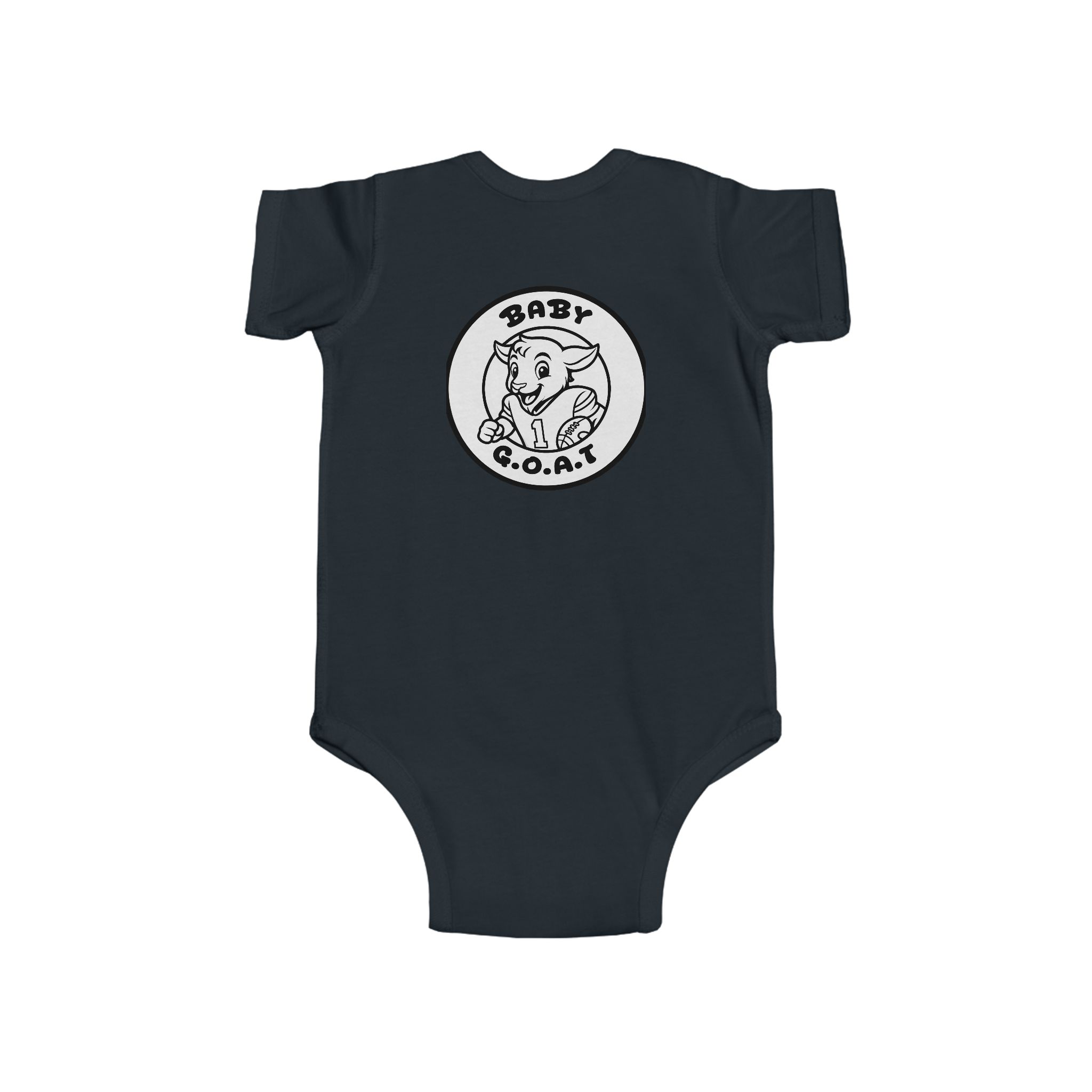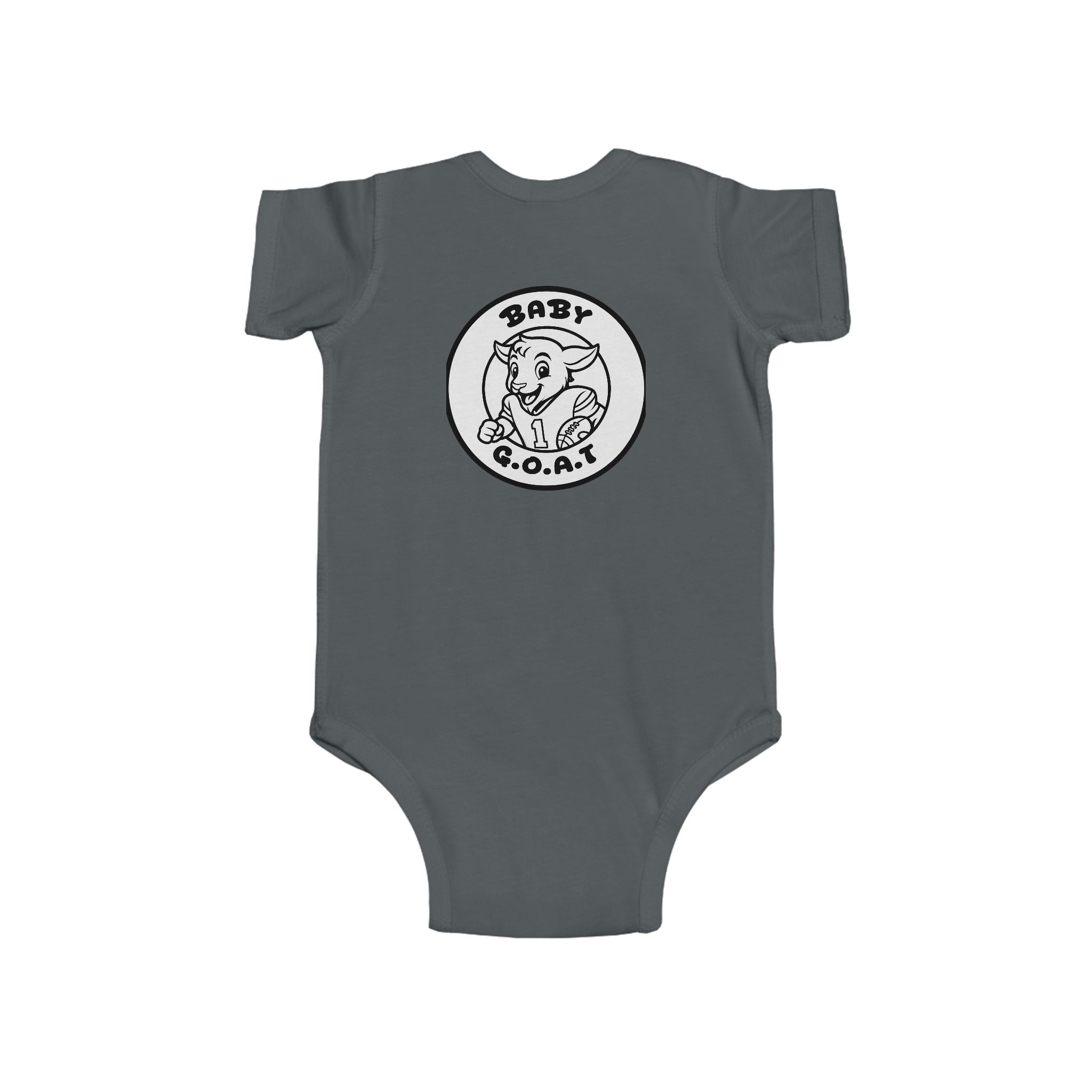 Soft, lightweight baby bodysuit with a playful “Baby G.O.A.T.” line-drawn design centered on the chest. The gentle fabric and ribbed neckline make diaper changes easy, while matching snaps keep the closure secure without pinching. It feels breathable against tiny skin and holds its shape wash after wash — a casual everyday layer that brings a little humor and personality to nap time and stroller outings.