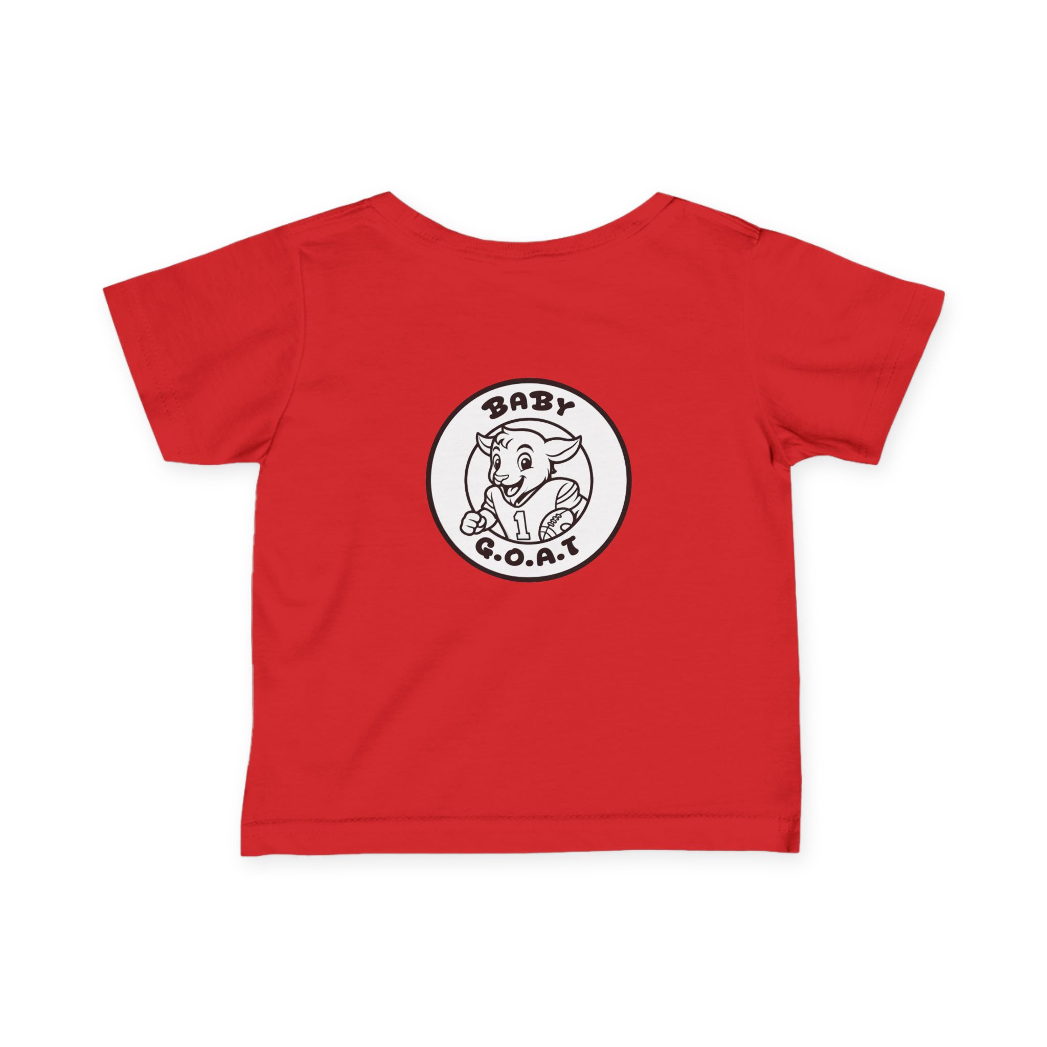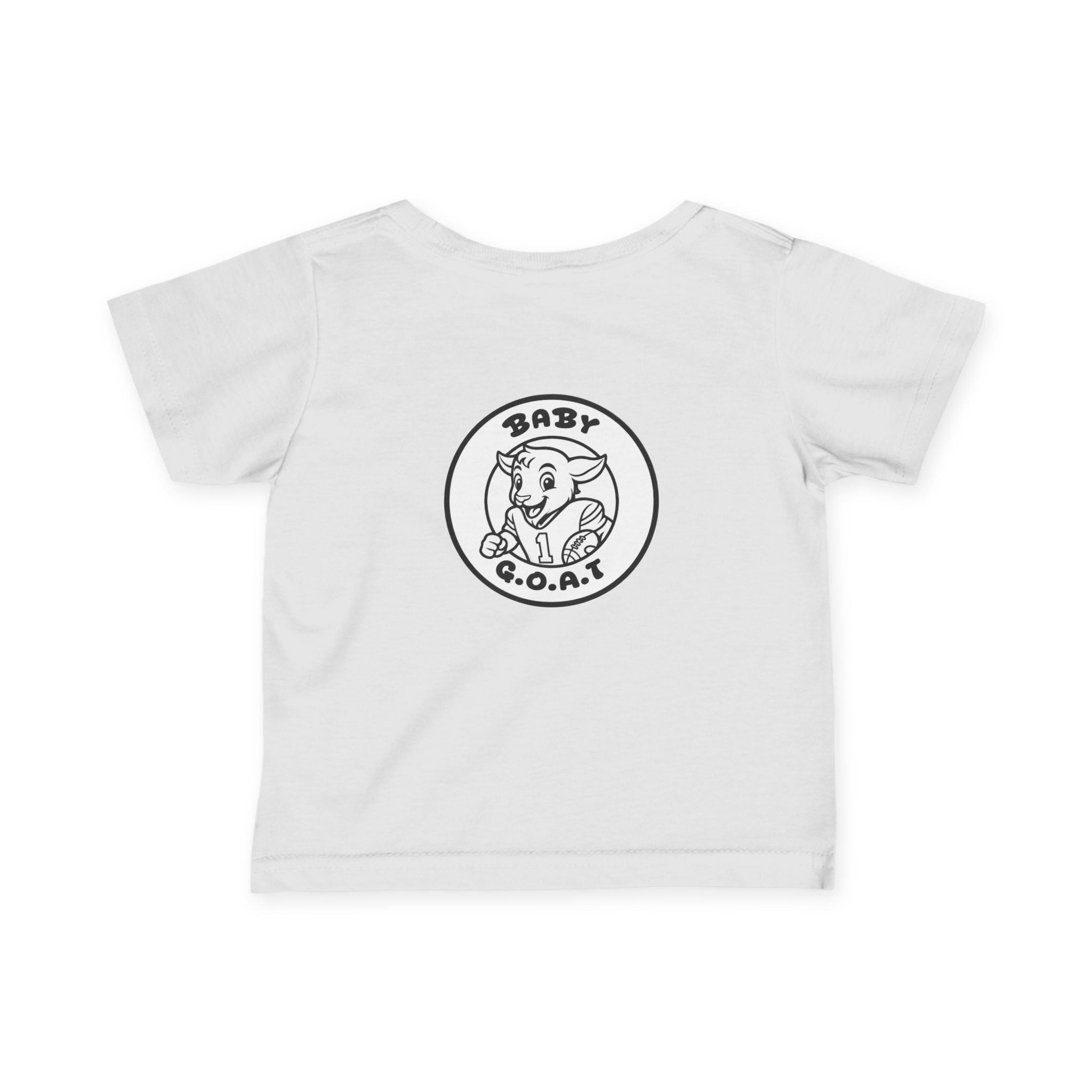 This soft infant tee brings a playful, vintage vibe to everyday baby wear. The lightweight, smooth jersey lies gentle against delicate skin while holding printed detail with crisp clarity. A hand-drawn baby goat logo sits centered on the front and back, giving the shirt a cheeky, nostalgic feel — like a tiny badge of personality for morning cuddles, stroller walks, or sleepy porch swings. The classic straight cut and ribbed collar keeps the silhouette simple and wearable, while the reinforced shoulder tape and side seams help the shirt keep its shape through wash after wash. It’s the kind of little top that pairs easily with leggings, denim, or a cozy cardigan and becomes part of the child’s everyday rhythm.