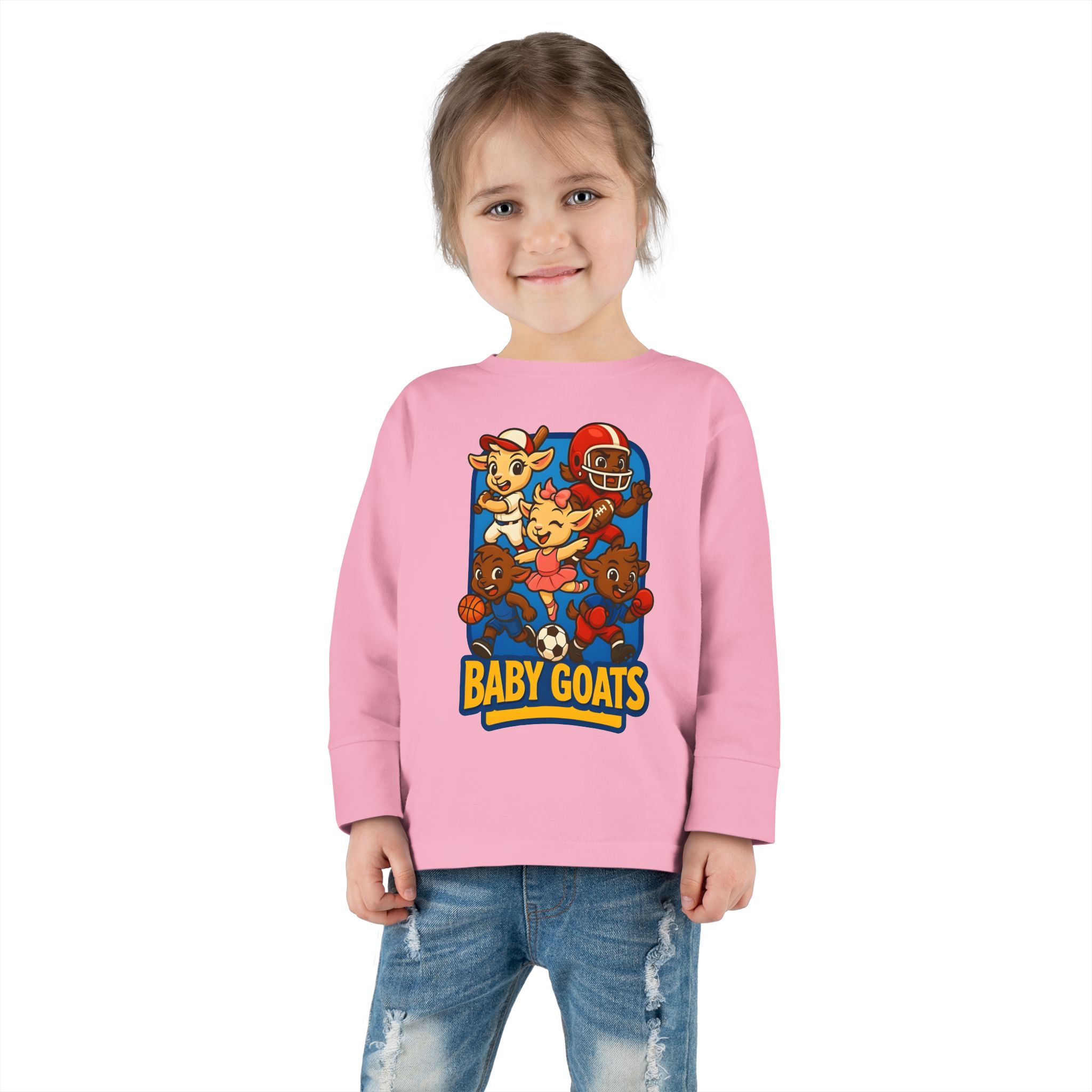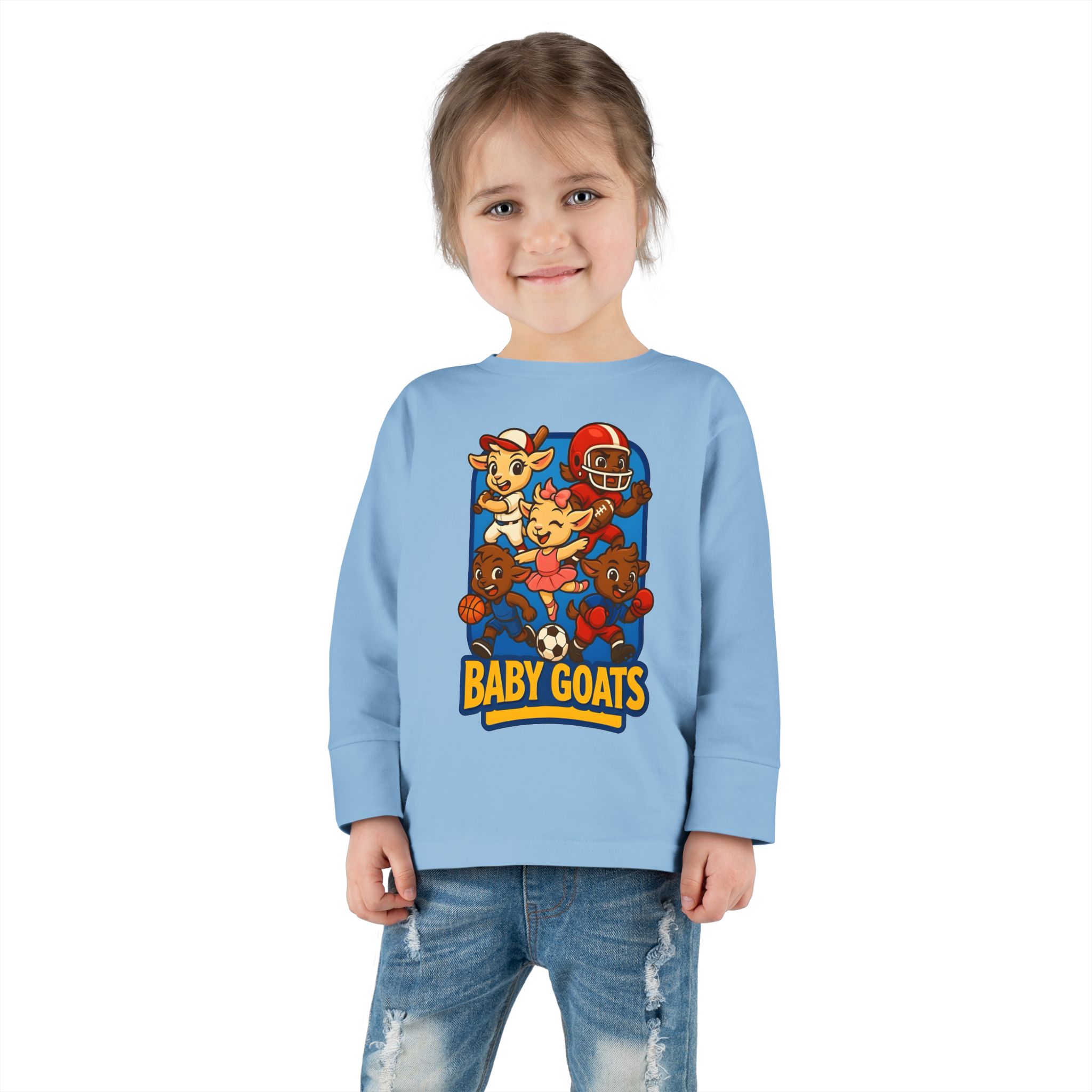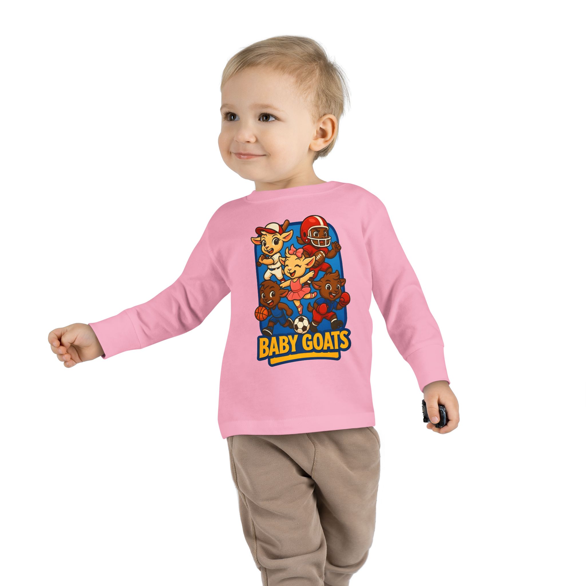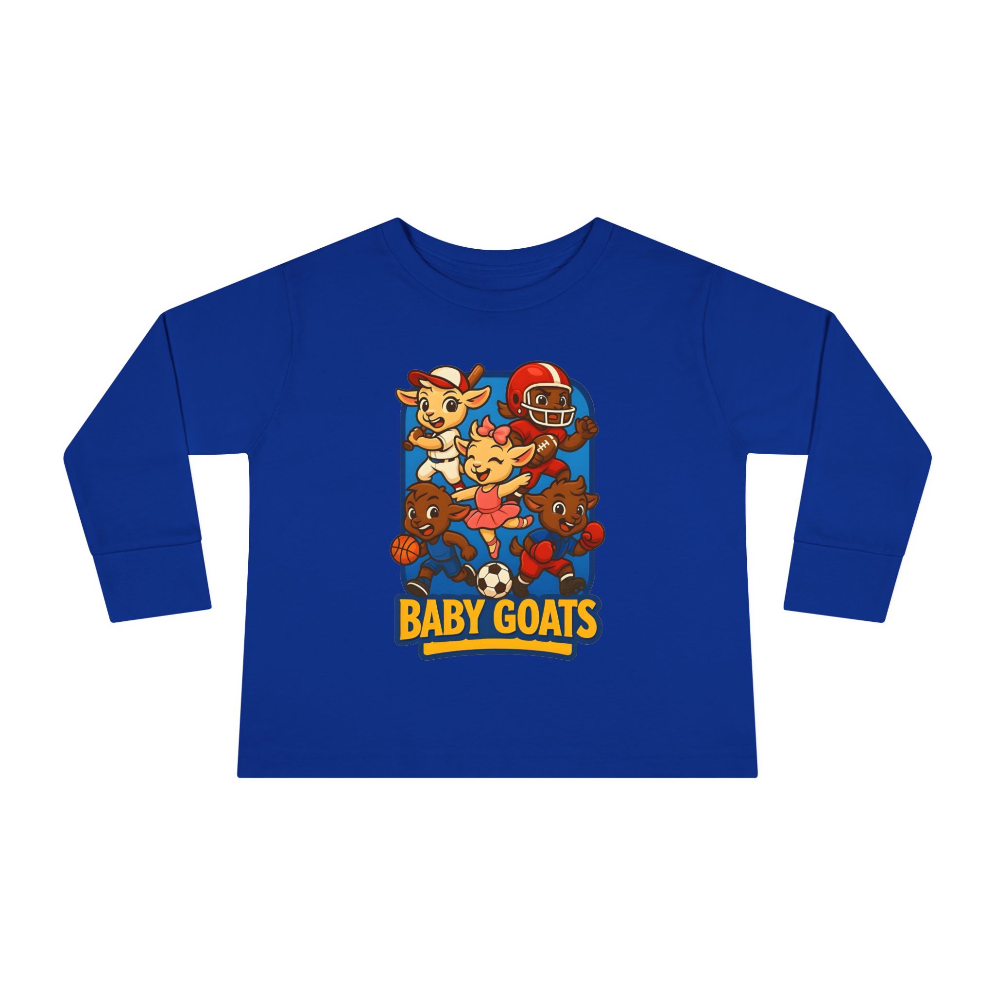 The Little Champs Crew Toddler Long Sleeve Tee — ‘Baby Goats’ Cute Sports Crewneck for Kids