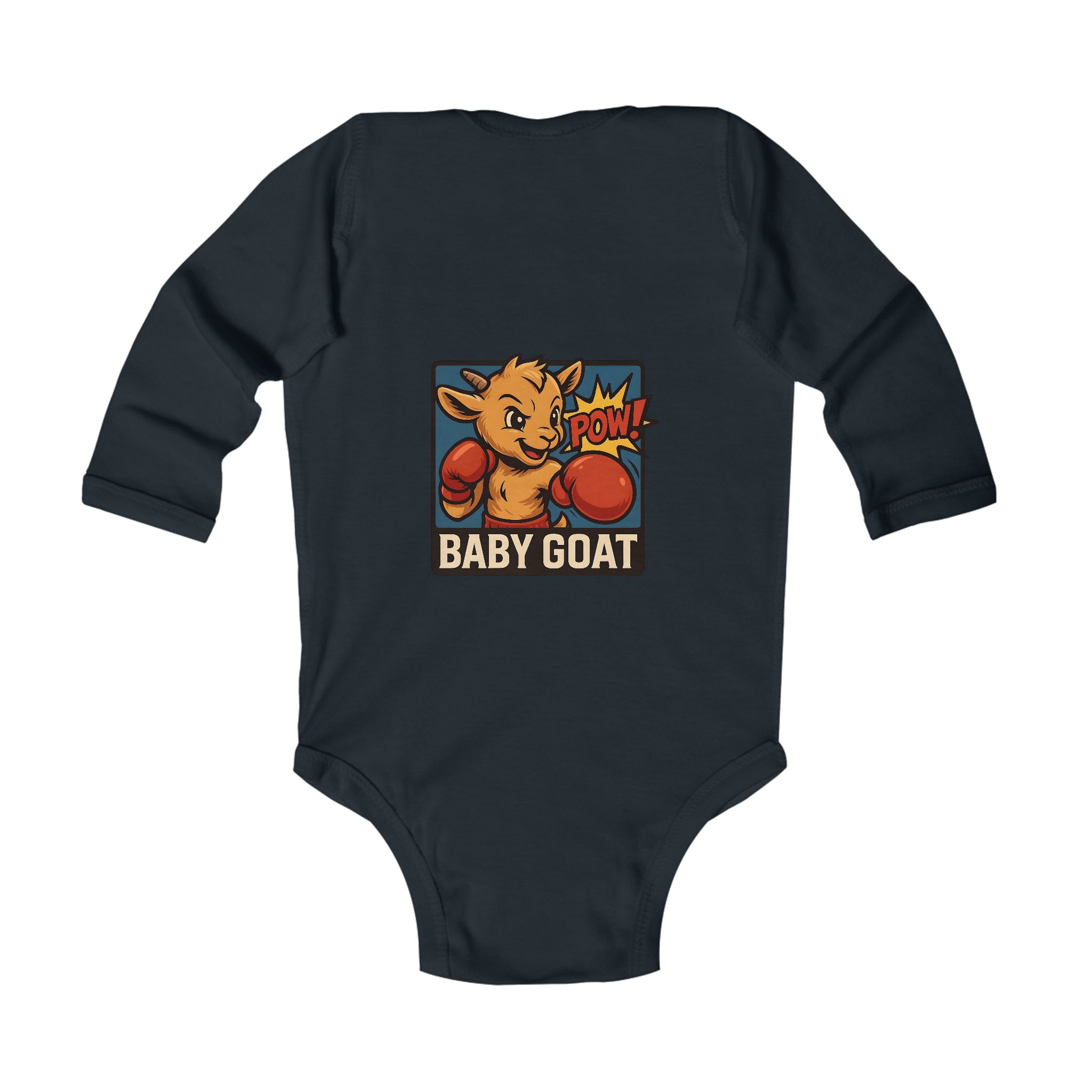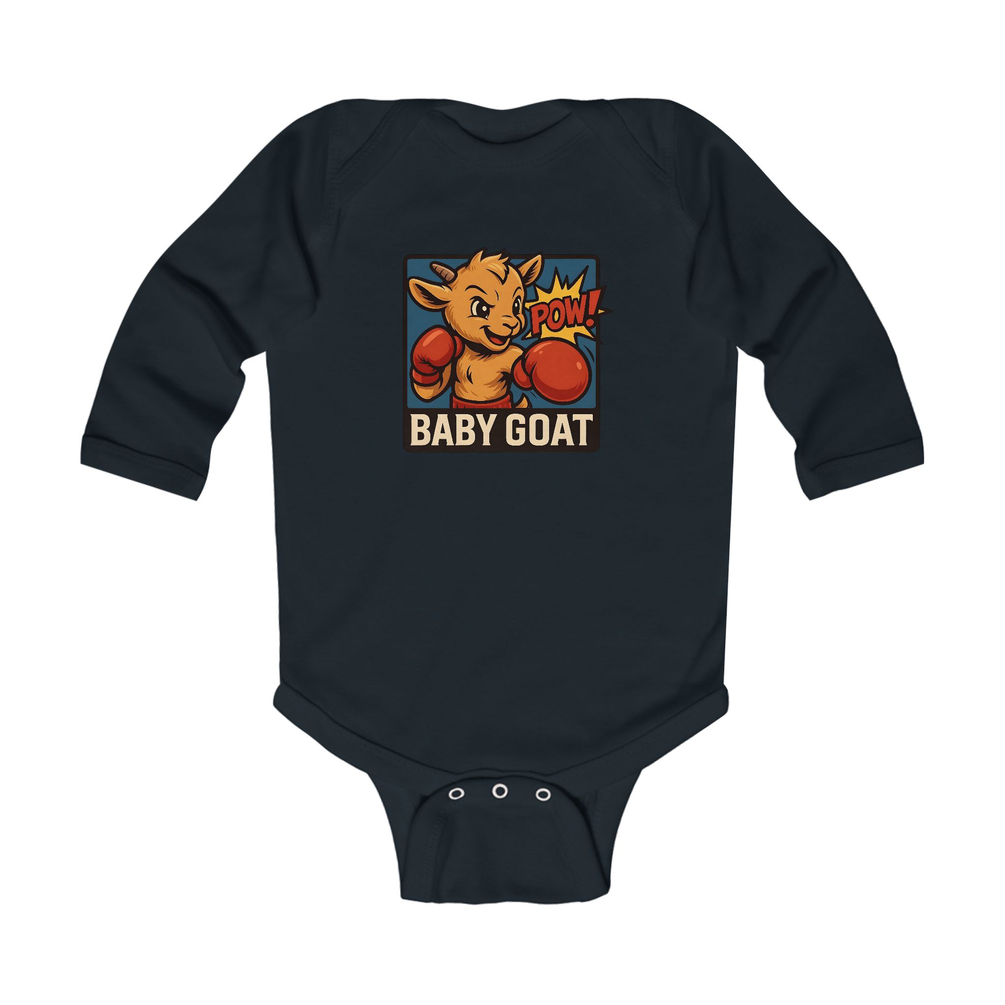 Baby G.O.A.T – Benny the Boxer Baby Goat Bodysuit — Cute Boxing Kid Graphic Infant Long Sleeve