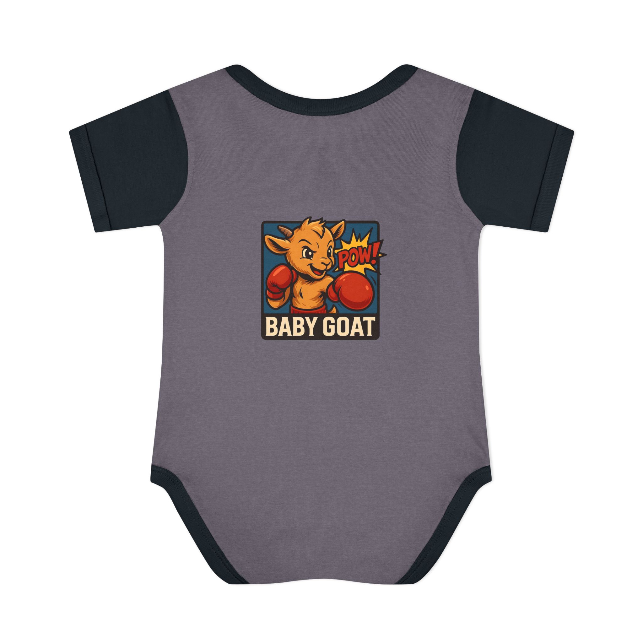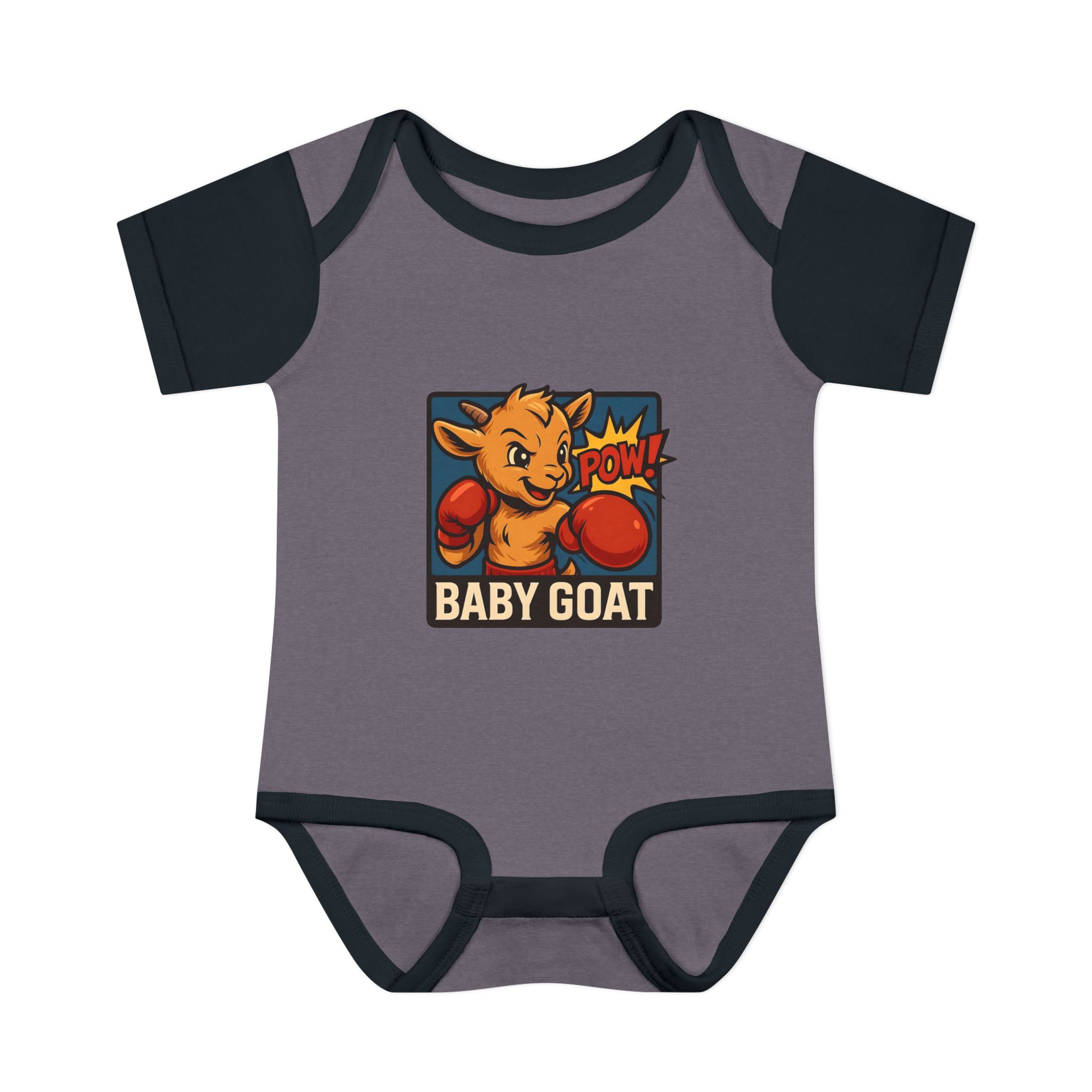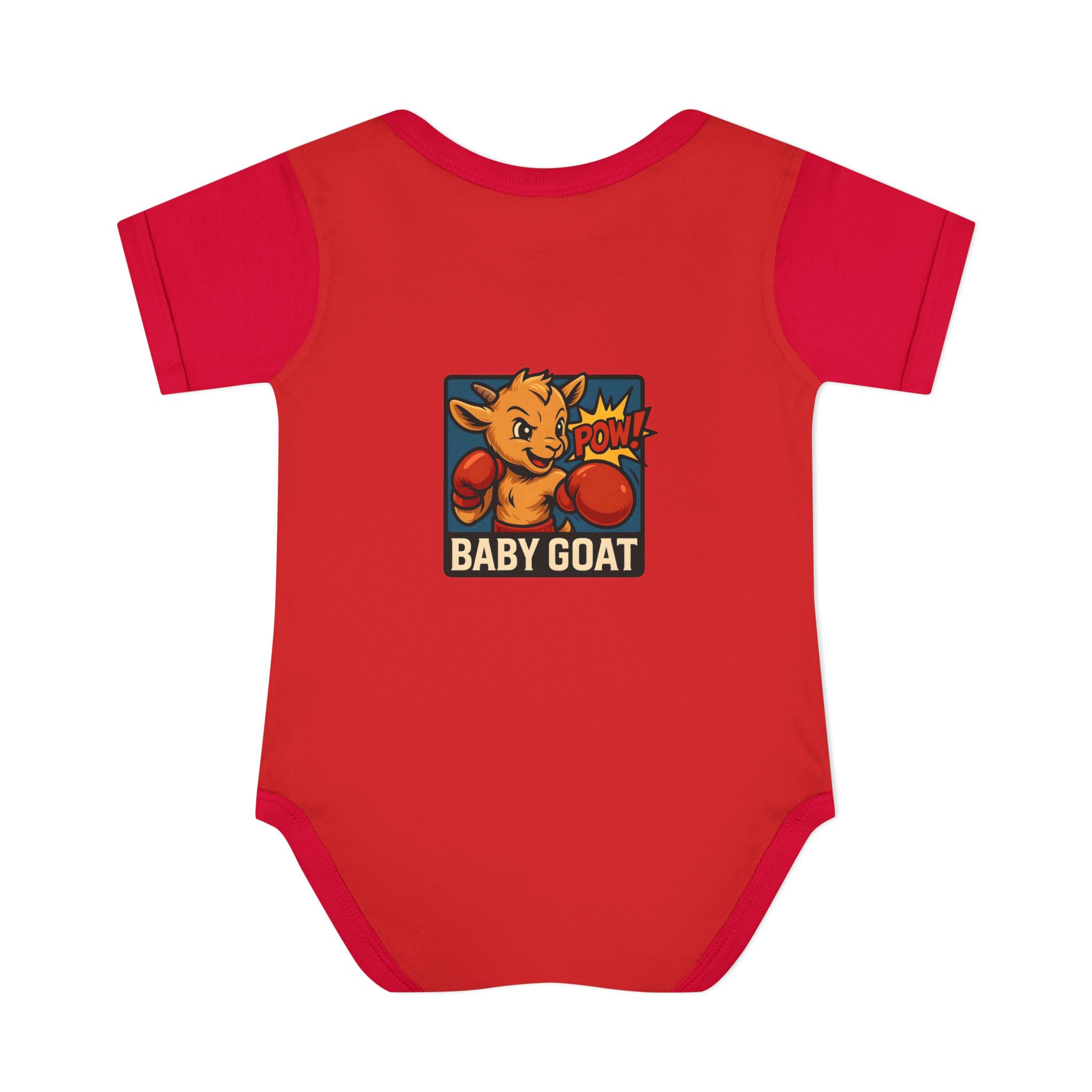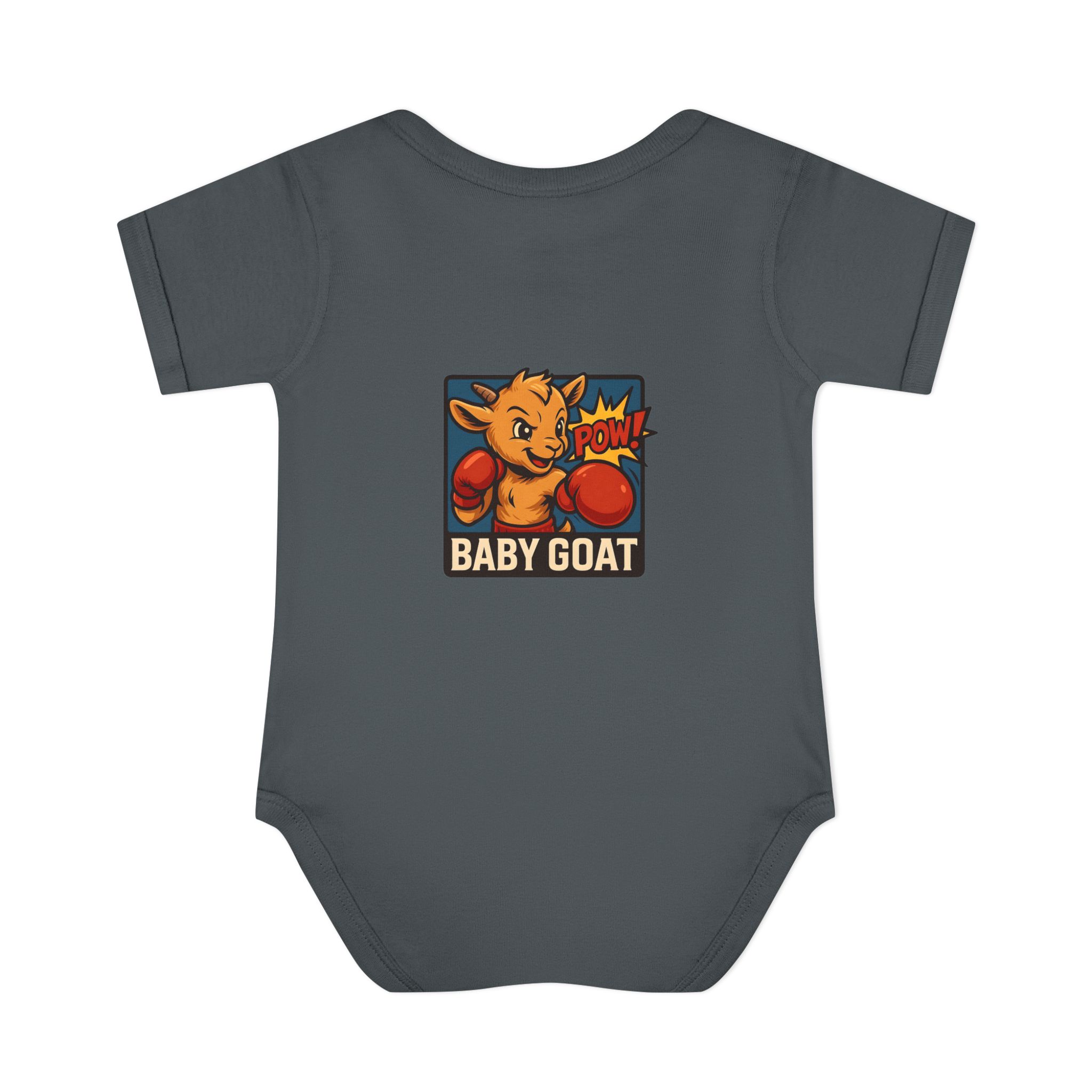 This soft rib bodysuit brings playful energy to baby’s everyday wardrobe. A bright, pop-art baby goat wearing boxing gloves is printed on lightweight, breathable cotton — a small, cheeky statement that makes diaper changes and cuddles more fun. The lap shoulder and three-snap closure keep dressing simple for busy parents while ribbed edges and side seams hold the shape wash after wash. It sits comfortably against delicate skin and the tagless-style DTF neck label avoids irritation. Dress it under overalls for a day at the park or keep it as the go-to outfit for cozy mornings and family photos.