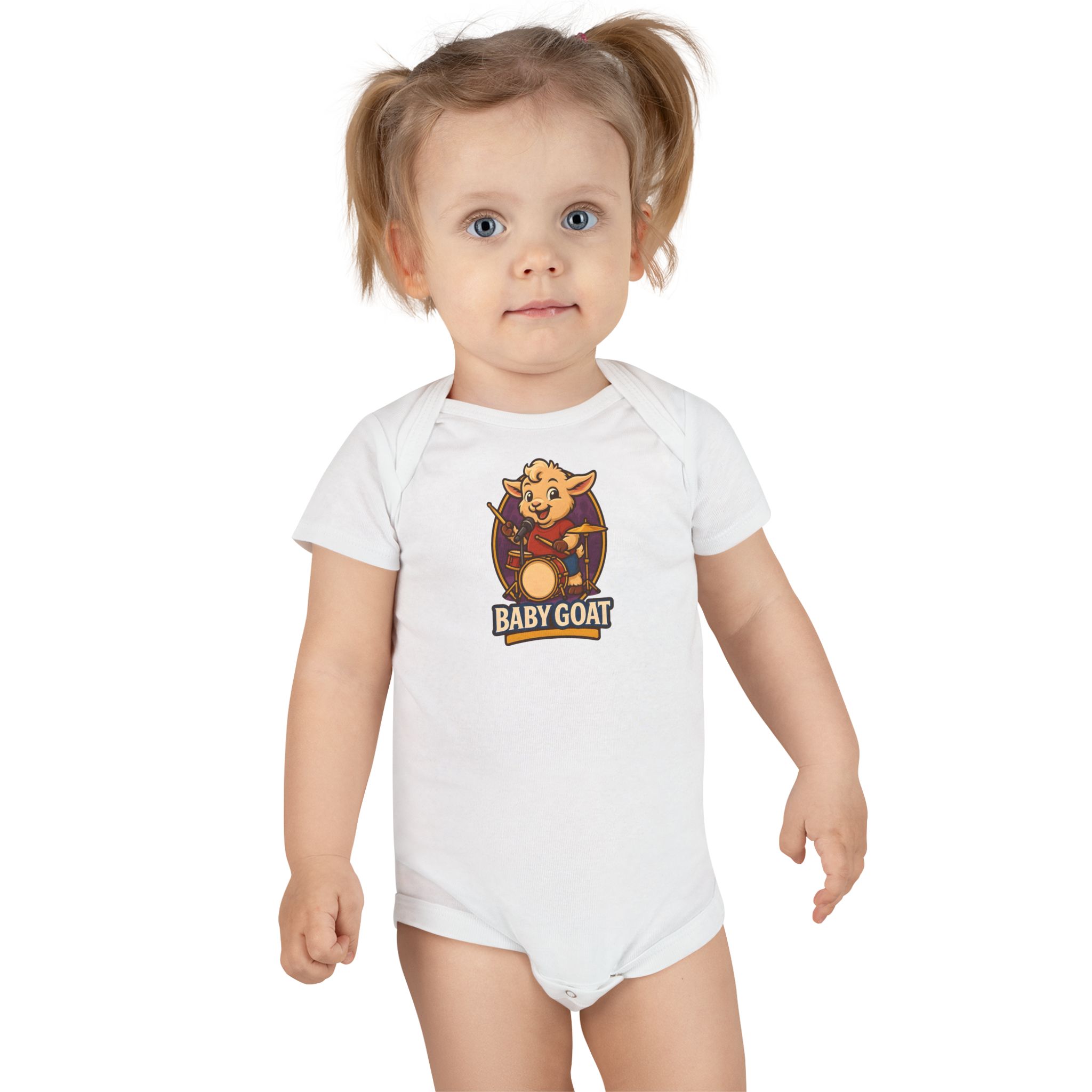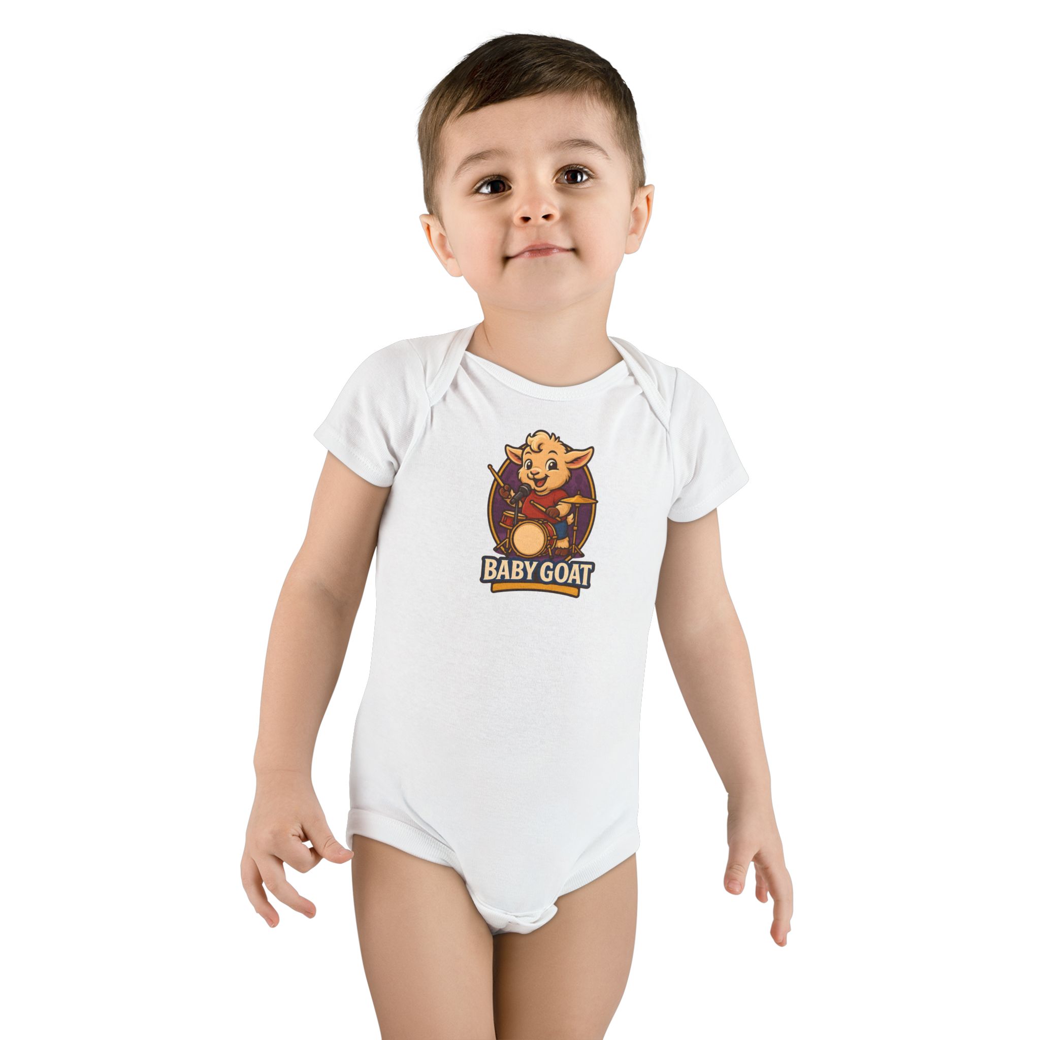 Soft, organic, and full of cheeky charm — this baby bodysuit features an illustrated “Baby Goat” crest that brings a little mischief to nap time and stroller strolls. The gentle rib cotton hugs tiny shoulders without scratching, while the expandable lap neckline and raised snap placement make mid-day changes faster and less fussy. Breathable, chemical-free fabric keeps newborn skin calm. Whether it’s a quiet morning at home, a family photo, or a weekend visit with grandparents, this onesie layers easily under sweaters or wears solo when the sun peeks out.