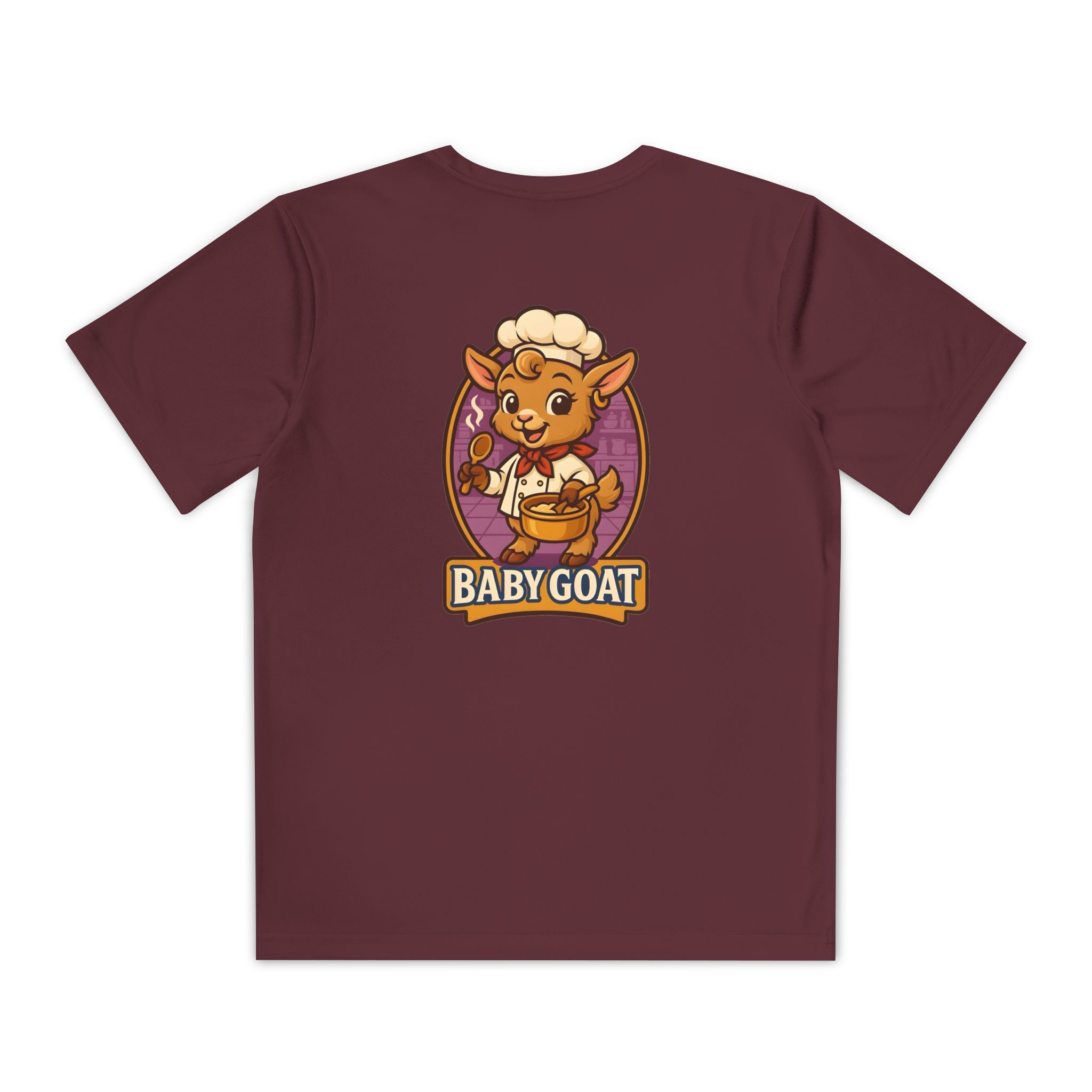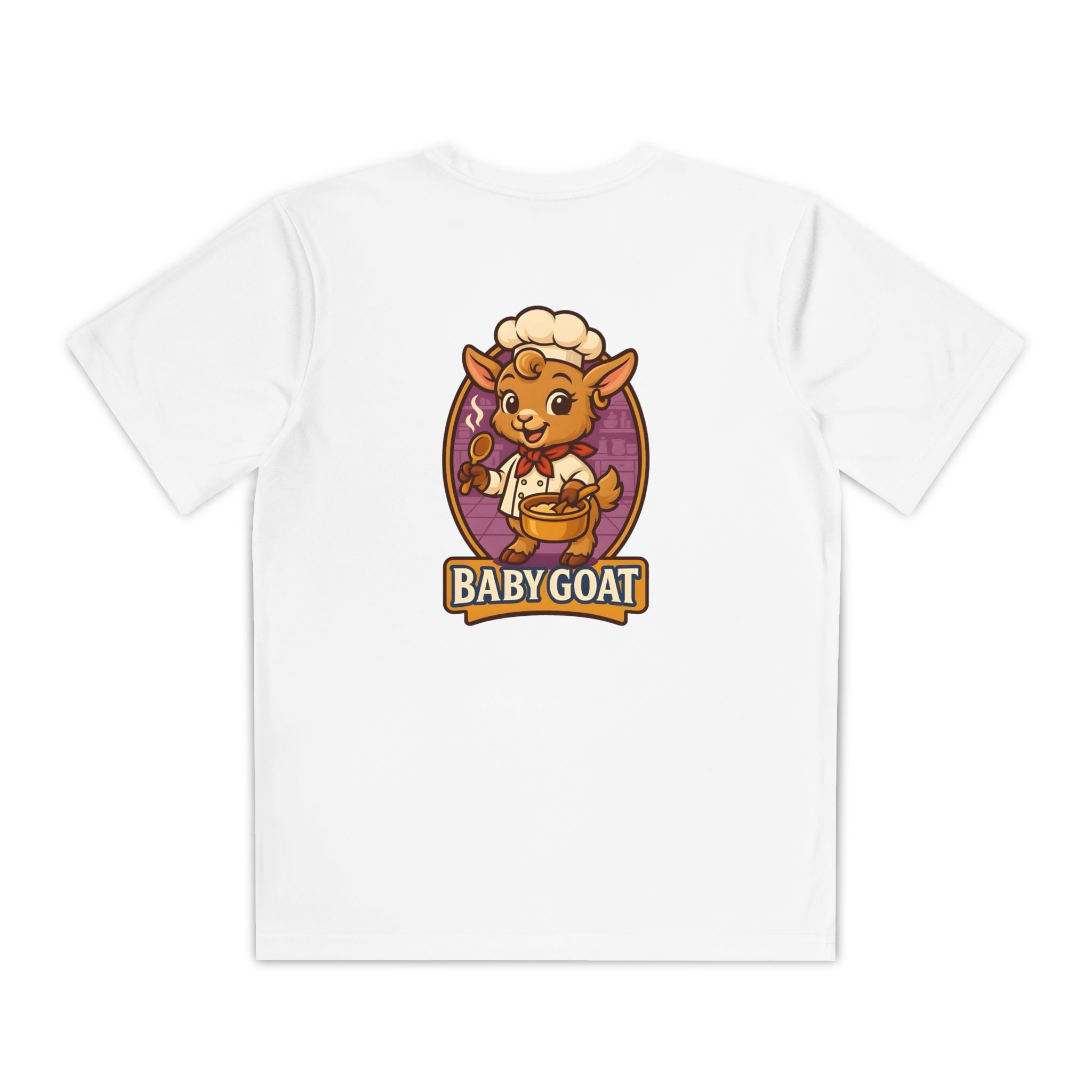 This lightweight athletic tee brings playful energy to young competitors. Soft-feeling, moisture-wicking polyester keeps them cool and dry through practice, weekend games, or backyard training. The bright, DTF-printed baby goat illustration adds a spirited, collectible look front and back — a confident emblem they’ll recognize and reach for before warm-ups. Cut with an athletic fit and finished with a tear-away label, the shirt moves with active kids and stays comfortable through long days of play and sport.
