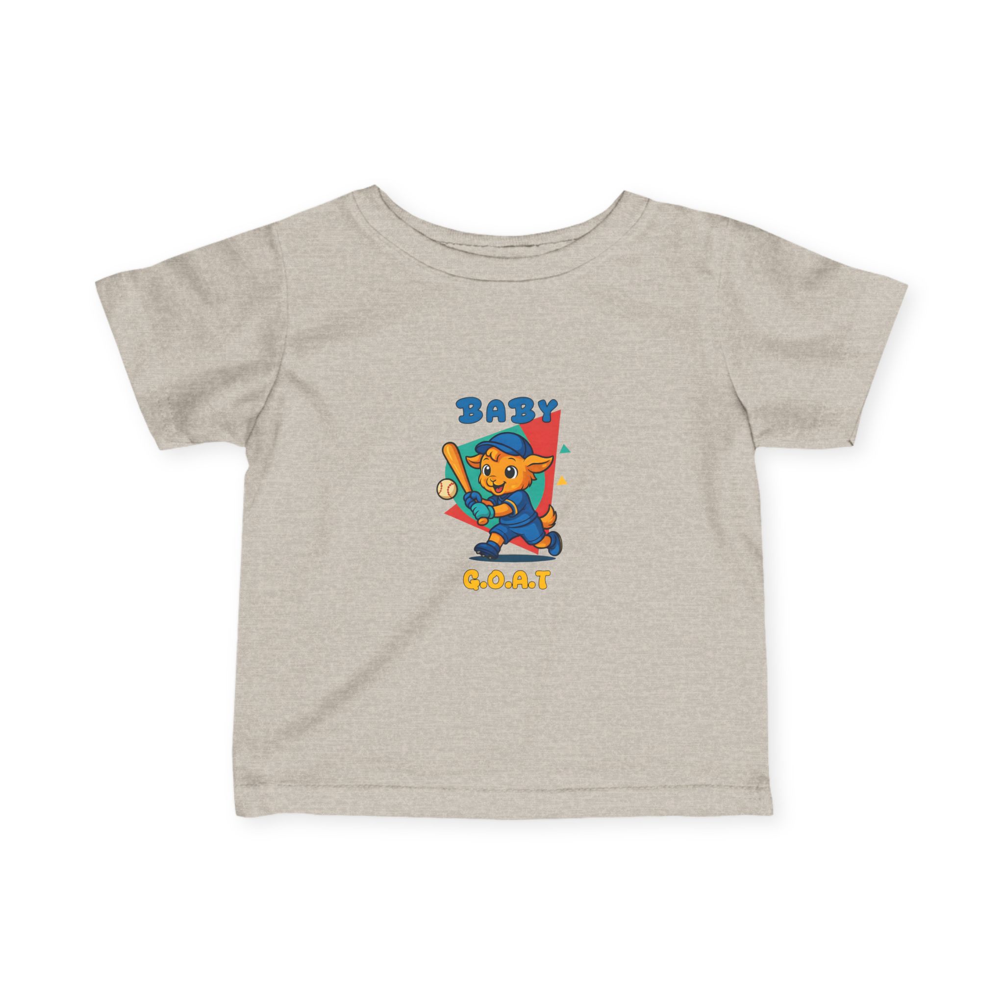 Soft, tiny, and full of personality — this infant tee feels like a little hug for everyday play. The lightweight, combed ring‑spun cotton drapes gently on a baby’s skin while the ribbed collar and shoulder tape keep the shape through wash and wear. A bright, playful illustration sits at the center: a cheerful, skateboard‑ready character with the words “BABY GOAT” in vibrant, kid‑friendly colors. It reads like a snapshot of backyard adventures — tumbling, laughing, and learning to roll with confidence.