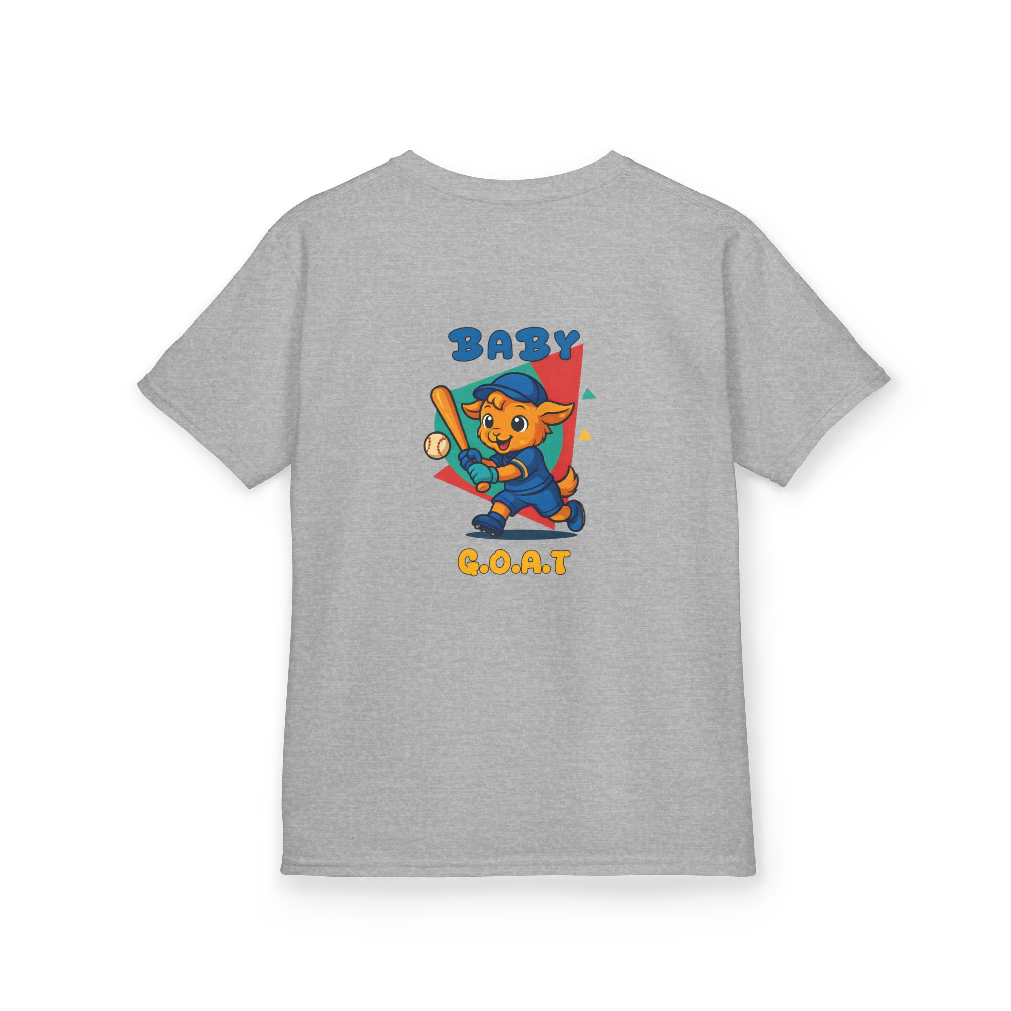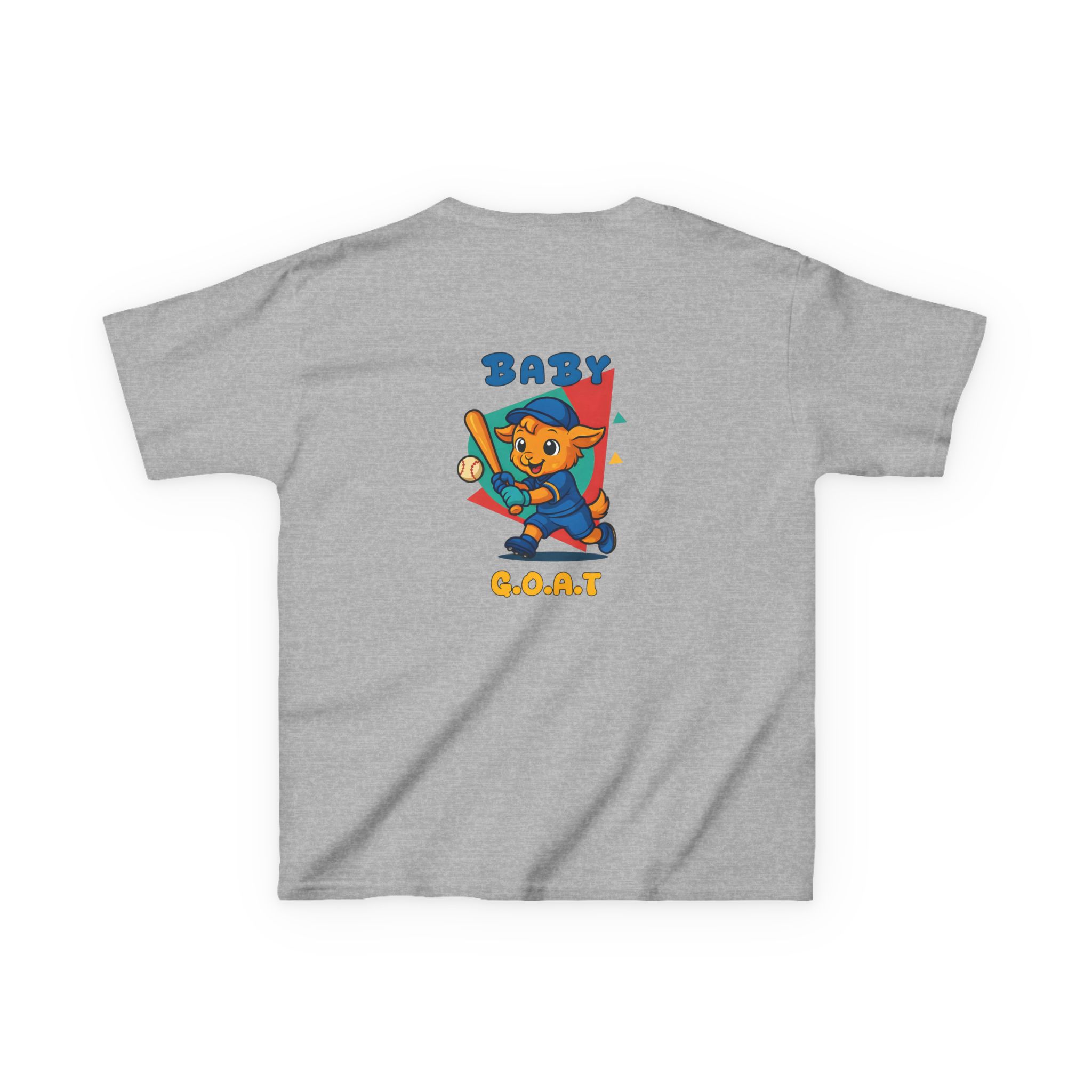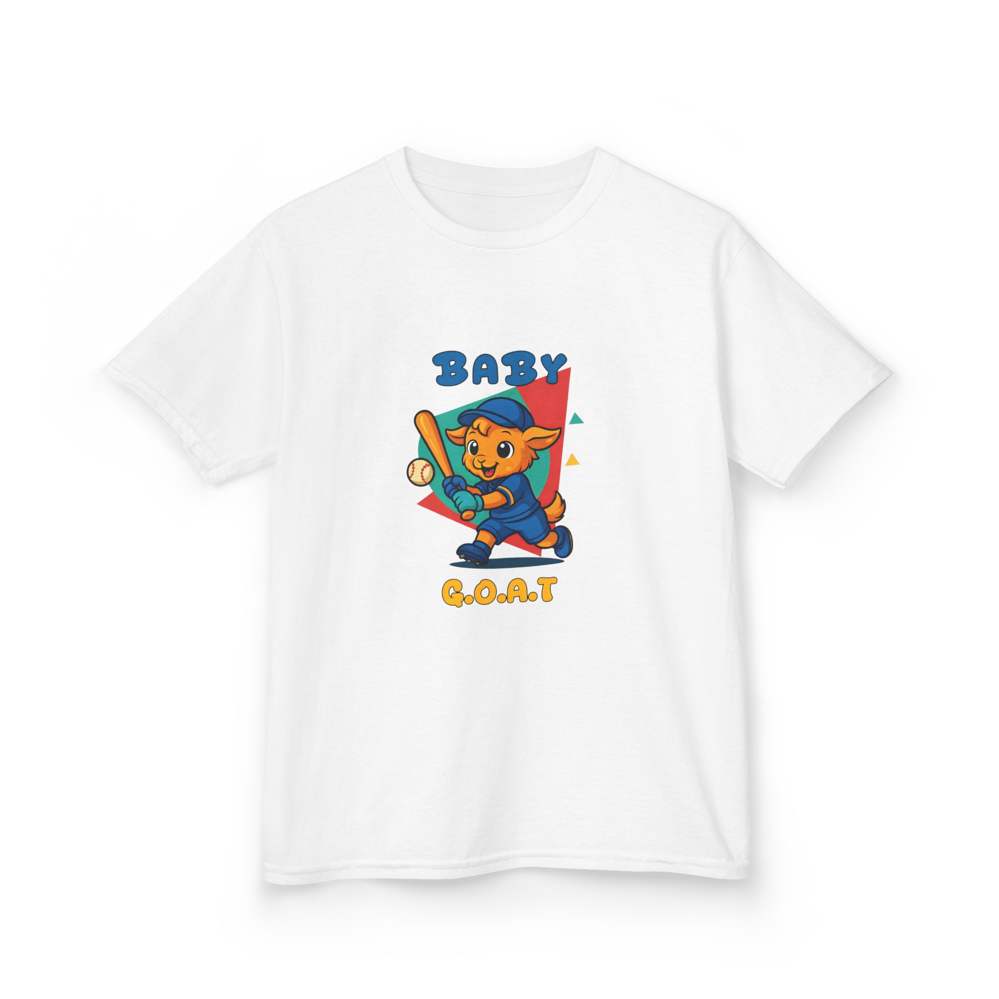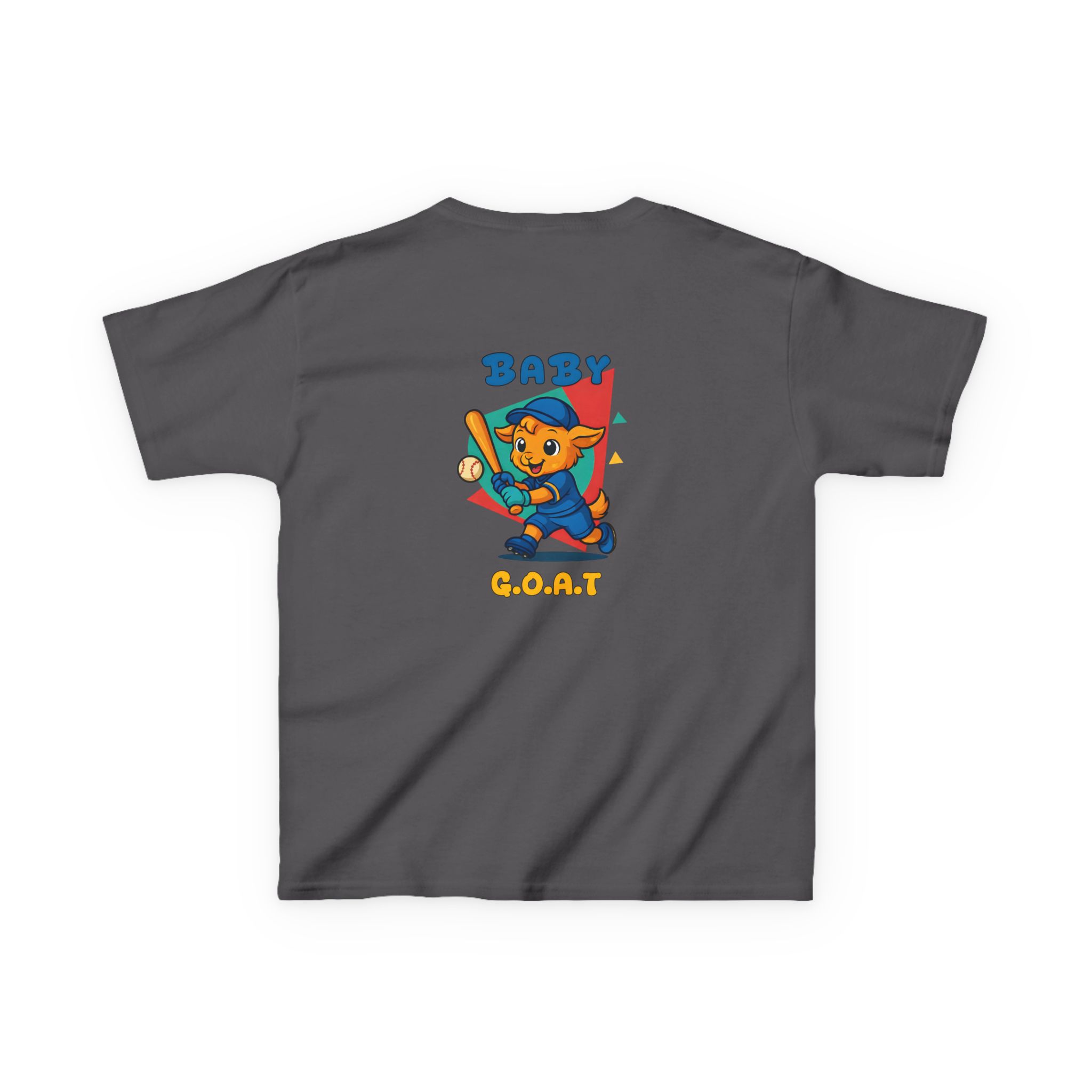 A playful kids’ tee that brings a splash of park-day energy to everyday wear. Soft midweight cotton keeps little ones comfy while the cheerful, vintage-style illustration — a confident young goat batting a baseball with ‘BABY G.O.A.T’ lettering — adds personality front and back. Light, breathable fabric and a classic crew neckline make it easy for active days, backyard games, and casual family outings. The design reads like a small celebration of confidence and play, so kids feel ready to run, play, and show off a brave, goofy grin.
