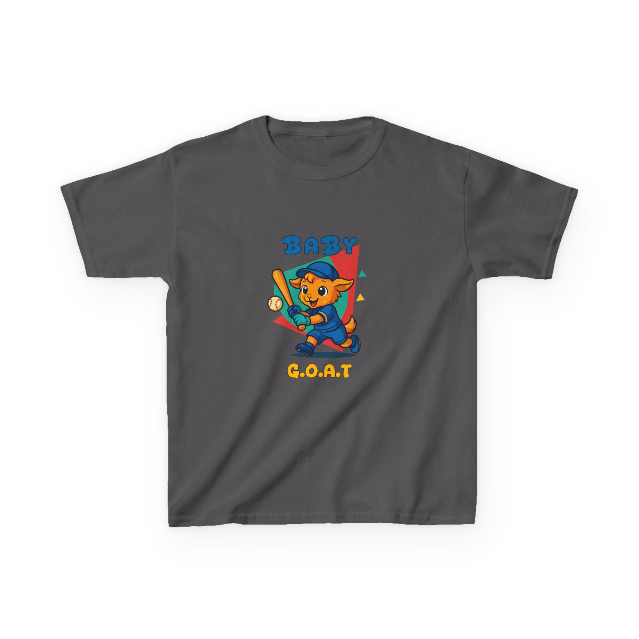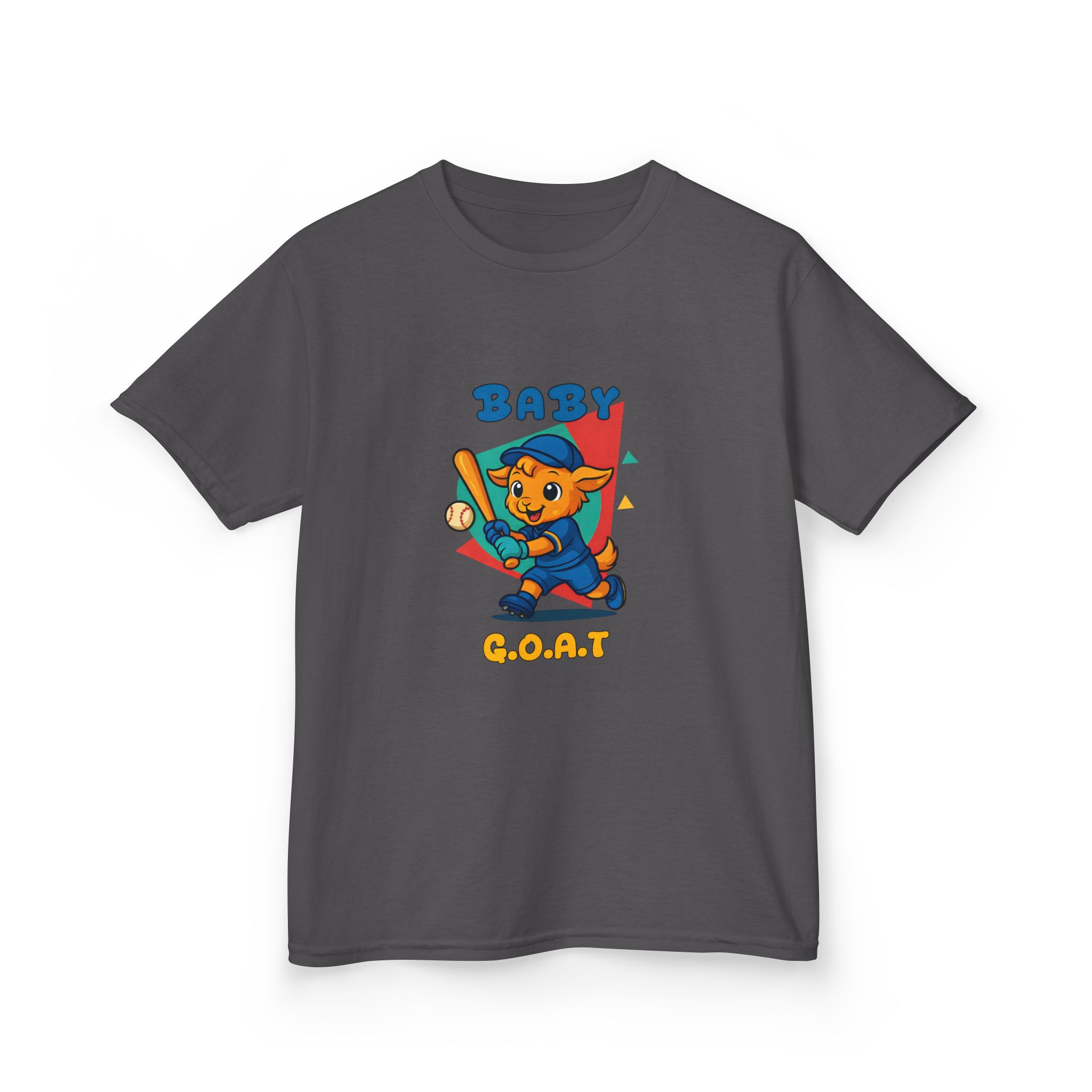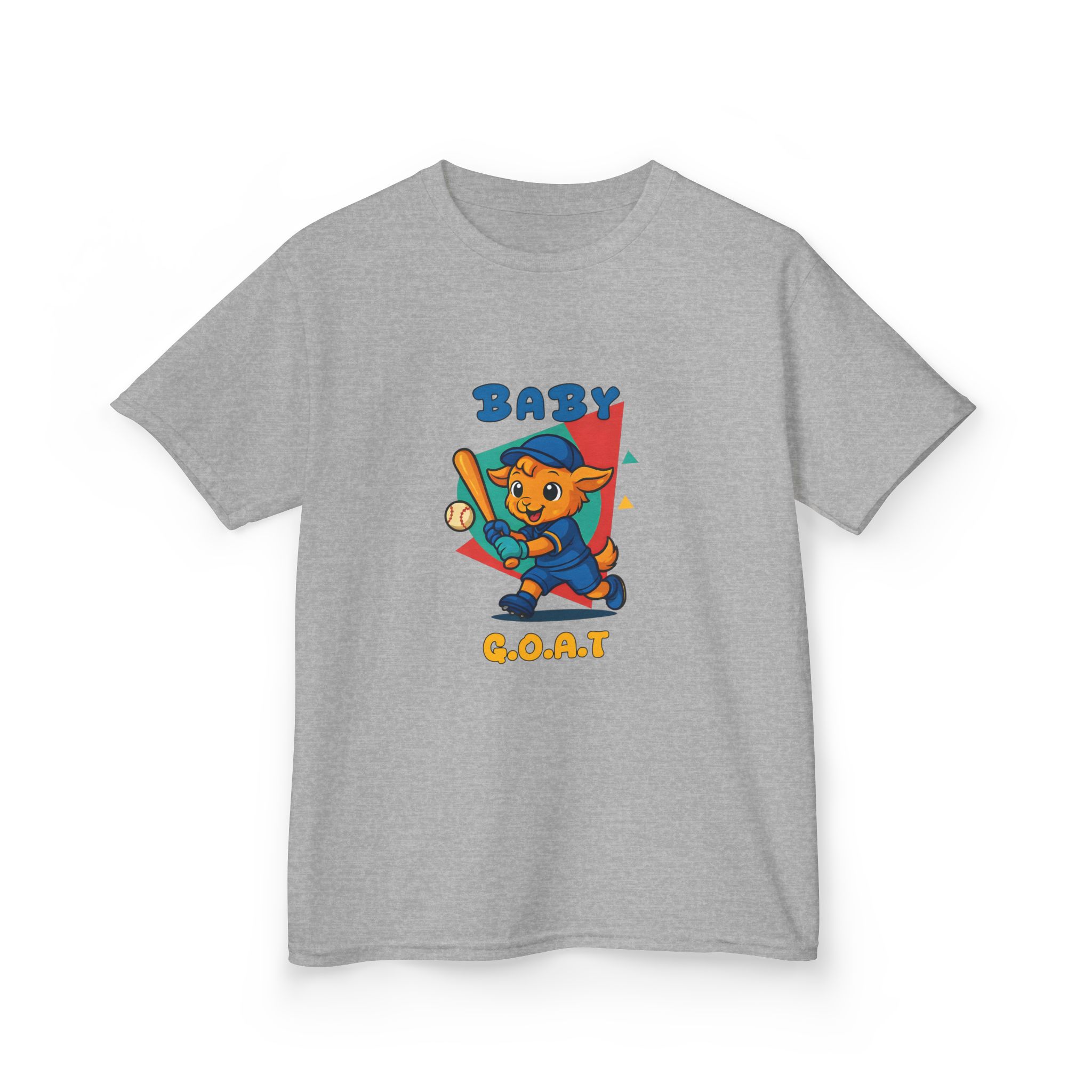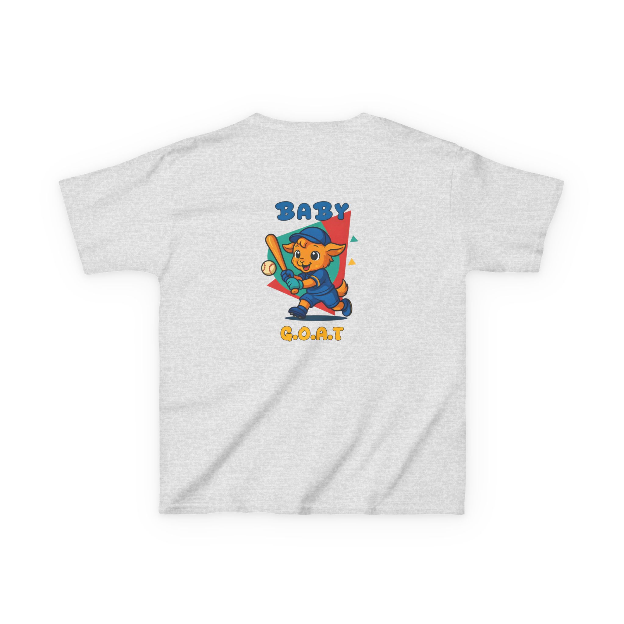 A playful kids’ tee that brings a splash of park-day energy to everyday wear. Soft midweight cotton keeps little ones comfy while the cheerful, vintage-style illustration — a confident young goat batting a baseball with ‘BABY G.O.A.T’ lettering — adds personality front and back. Light, breathable fabric and a classic crew neckline make it easy for active days, backyard games, and casual family outings. The design reads like a small celebration of confidence and play, so kids feel ready to run, play, and show off a brave, goofy grin.