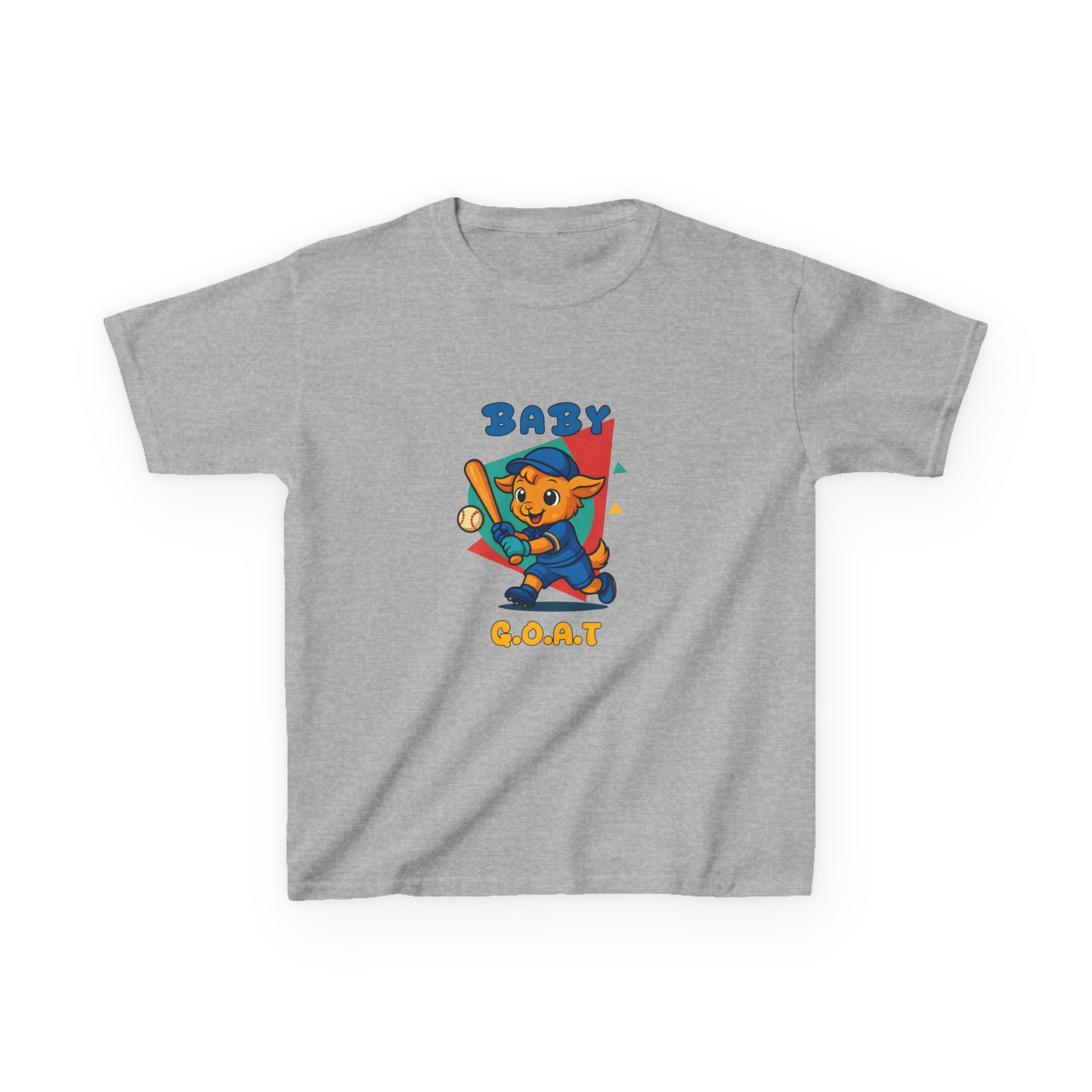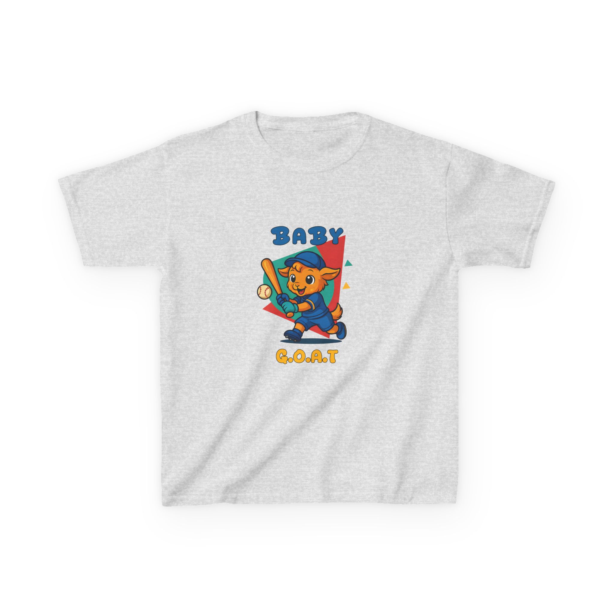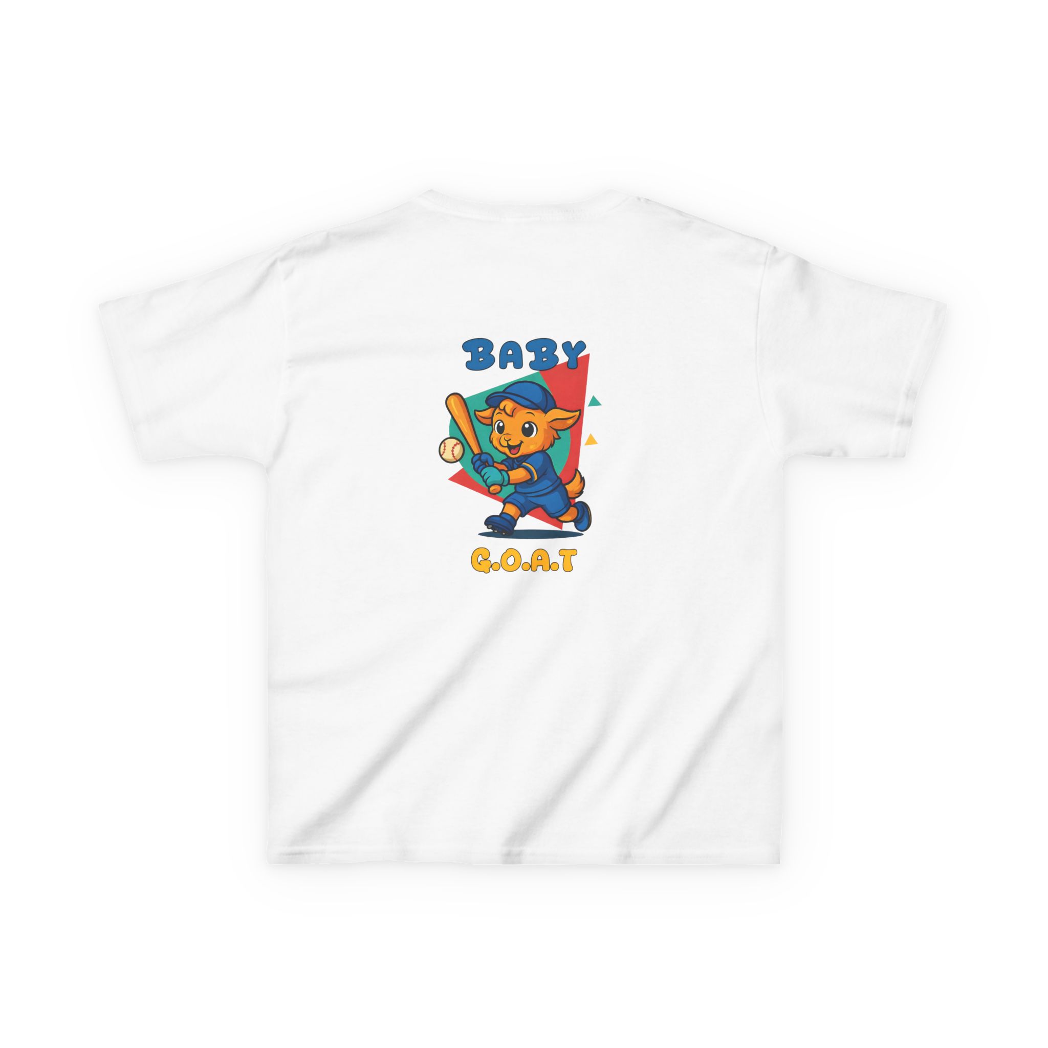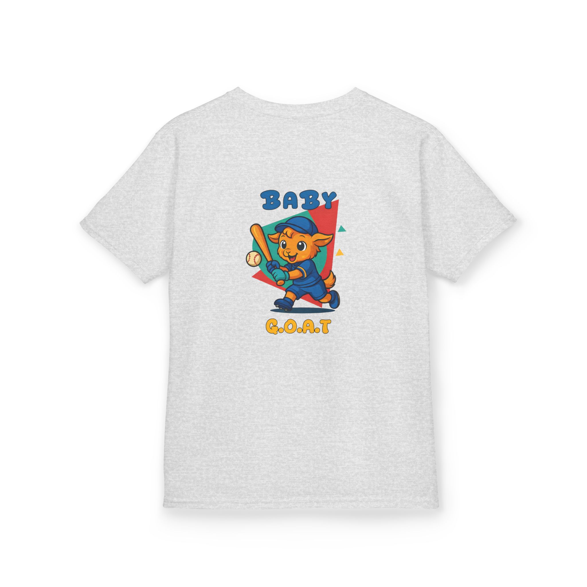 A playful kids’ tee that brings a splash of park-day energy to everyday wear. Soft midweight cotton keeps little ones comfy while the cheerful, vintage-style illustration — a confident young goat batting a baseball with ‘BABY G.O.A.T’ lettering — adds personality front and back. Light, breathable fabric and a classic crew neckline make it easy for active days, backyard games, and casual family outings. The design reads like a small celebration of confidence and play, so kids feel ready to run, play, and show off a brave, goofy grin.