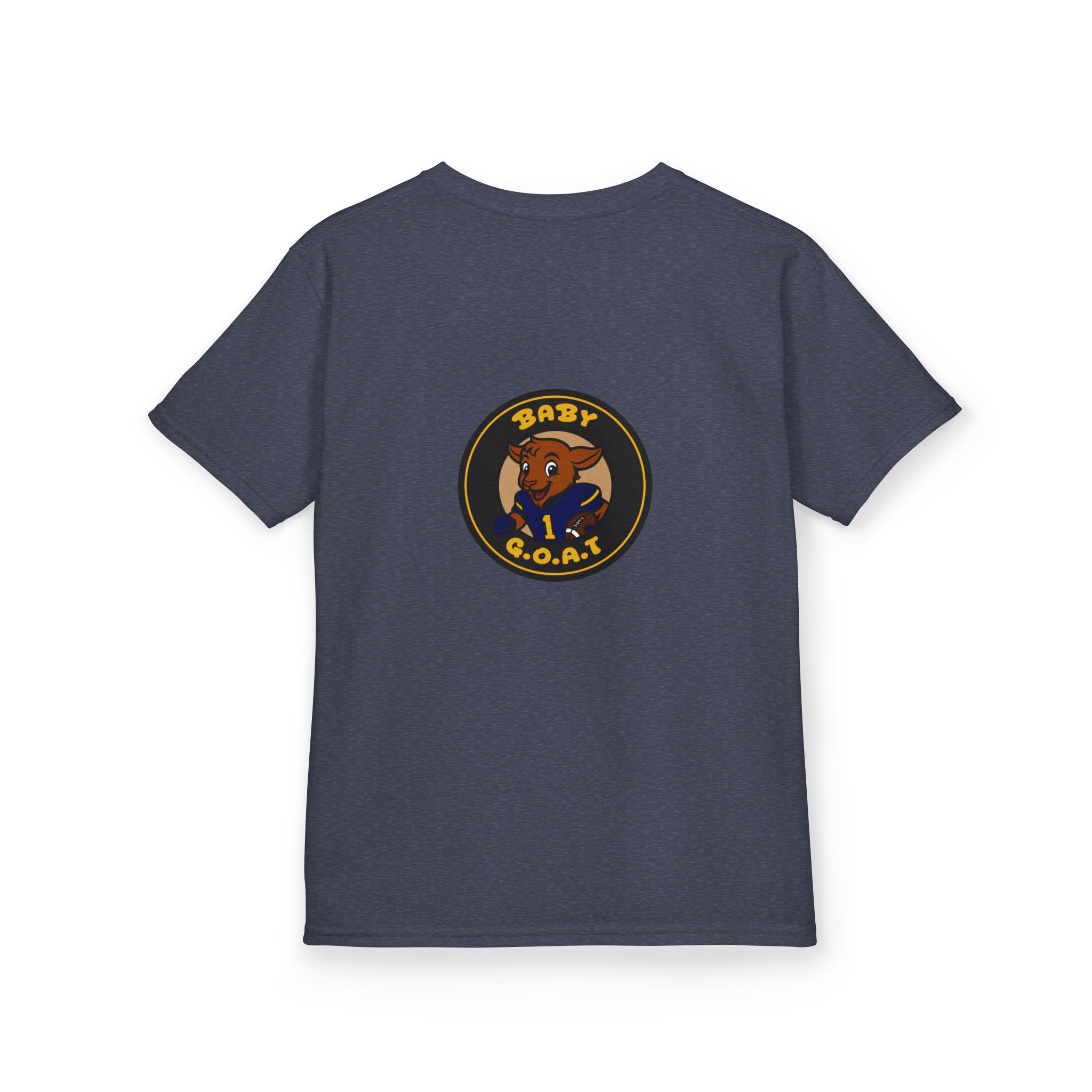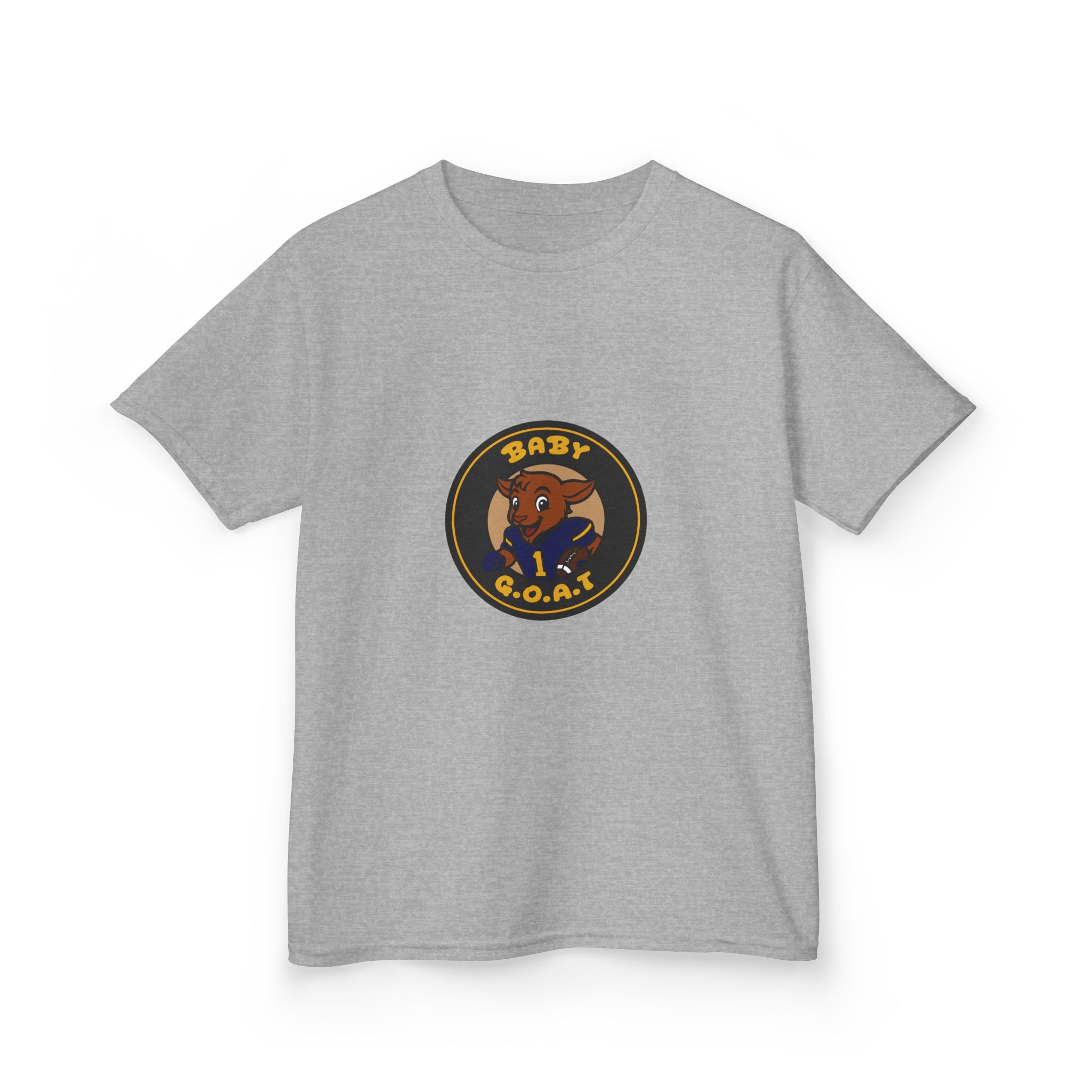This soft, midweight kids tee carries a playful badge-style design—an illustrated baby goat character framed in a warm, vintage-inspired round patch. The shirt feels gentle against little skin and holds its shape through play and wash cycles. It slips on easily for everyday adventures: park afternoons, storytime, and cozy family photos. The design reads like a tiny emblem of confidence and mischief, the kind that sparks a grin and starts conversations at the playground. Breathable cotton, reinforced shoulders, and a smooth collar mean caregivers won’t fuss with comfort, and the understated chest-and-back placement keeps the look versatile under jackets or alone on sunny days.