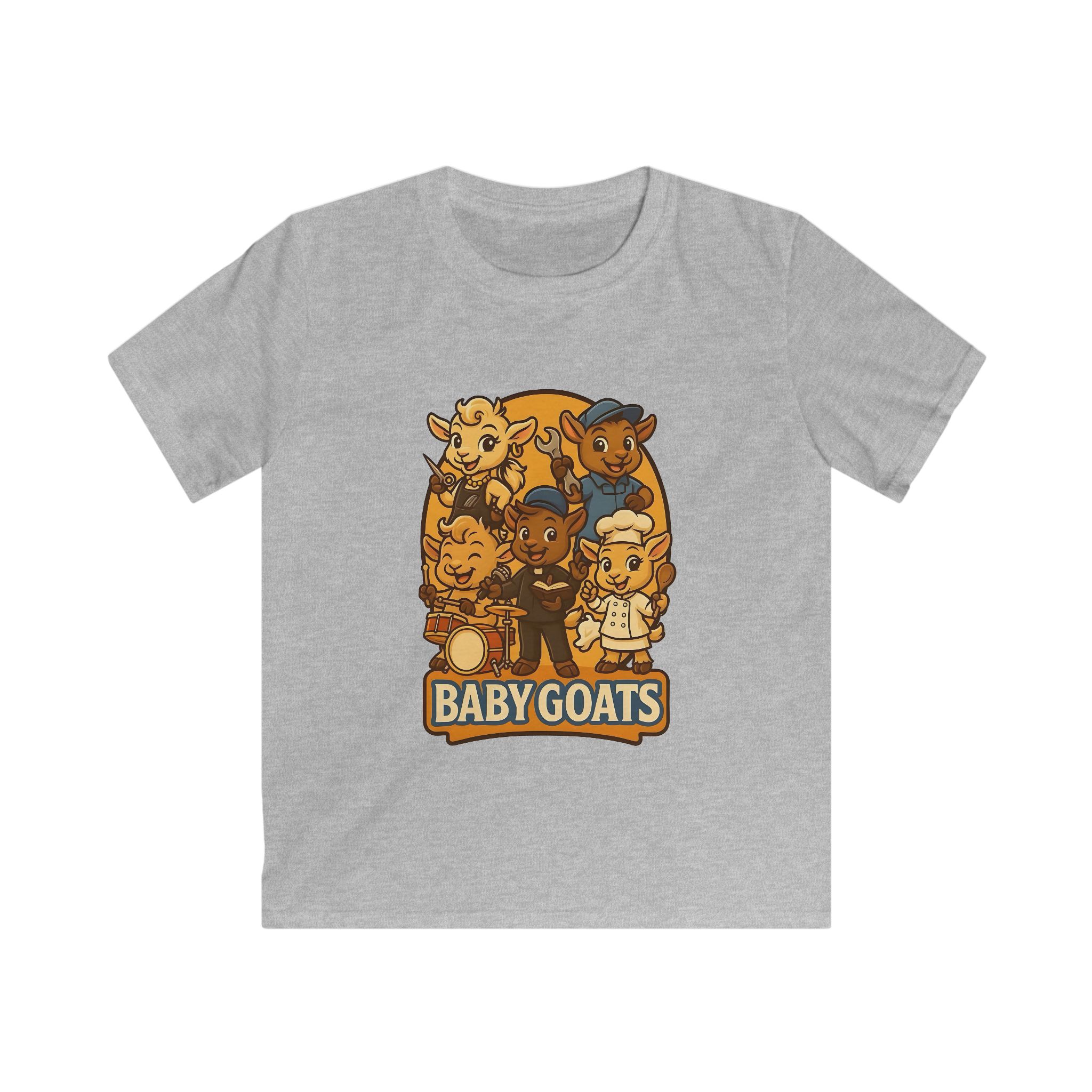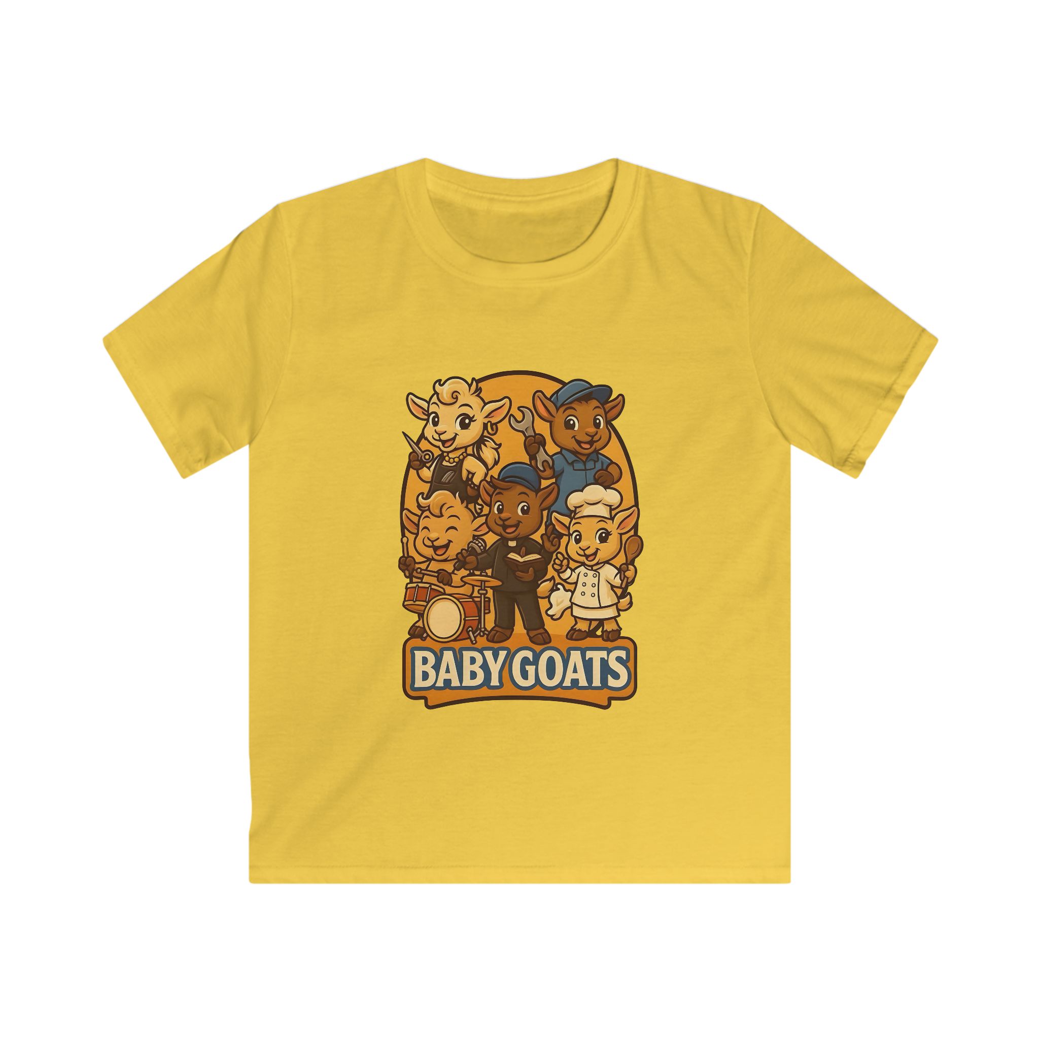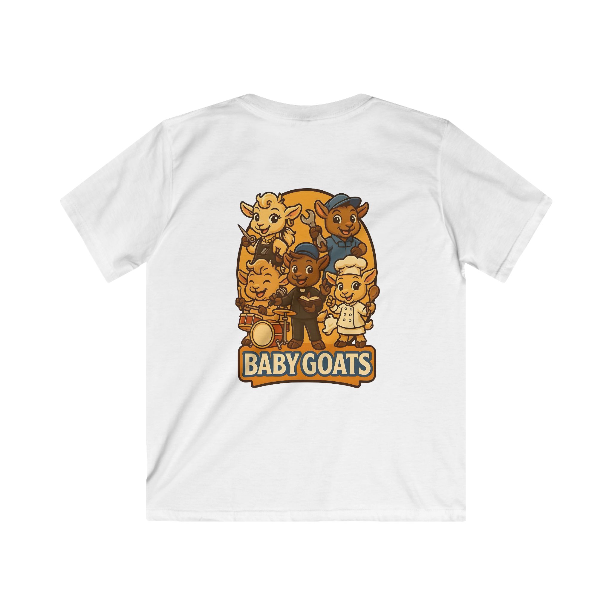 Bright, playful, and made for little explorers — this kids tee brings a band of cheerful baby goats to life. Soft, lightweight fabric sits comfortably against sensitive skin while a classic fit gives room to run, play, and climb. The illustrated goat crew, rendered in warm retro tones, invites imaginative stories and pretend concerts. Wear it to storytime, a family outing, or a day at the park and watch small faces light up when they spot their new favorite shirt. Durable, smooth knit keeps the print crisp through washes, and a tear-away label means no scratchy interruptions during adventures.