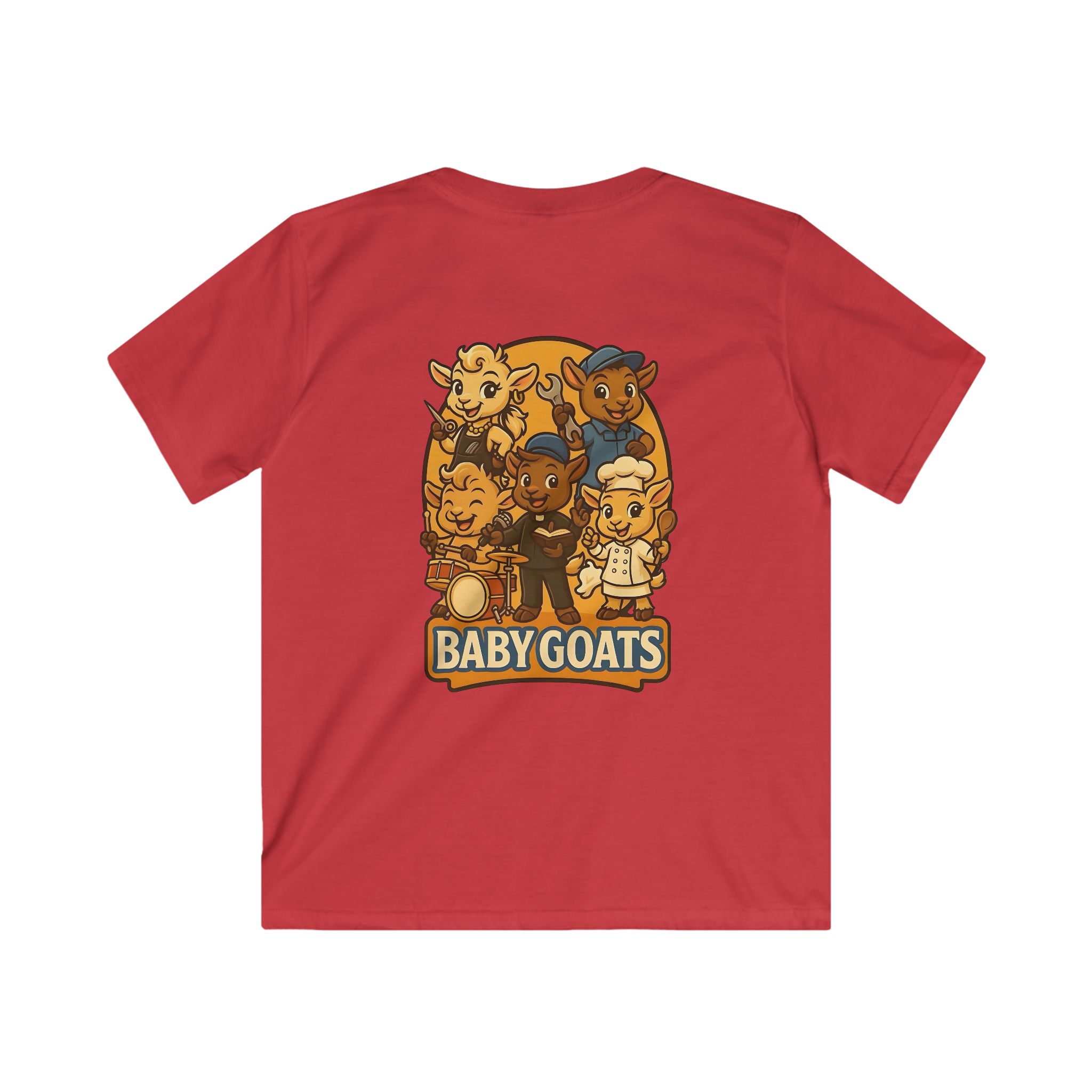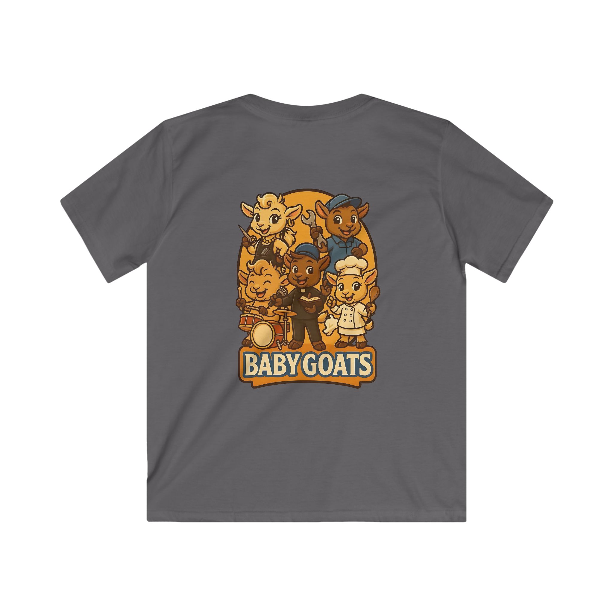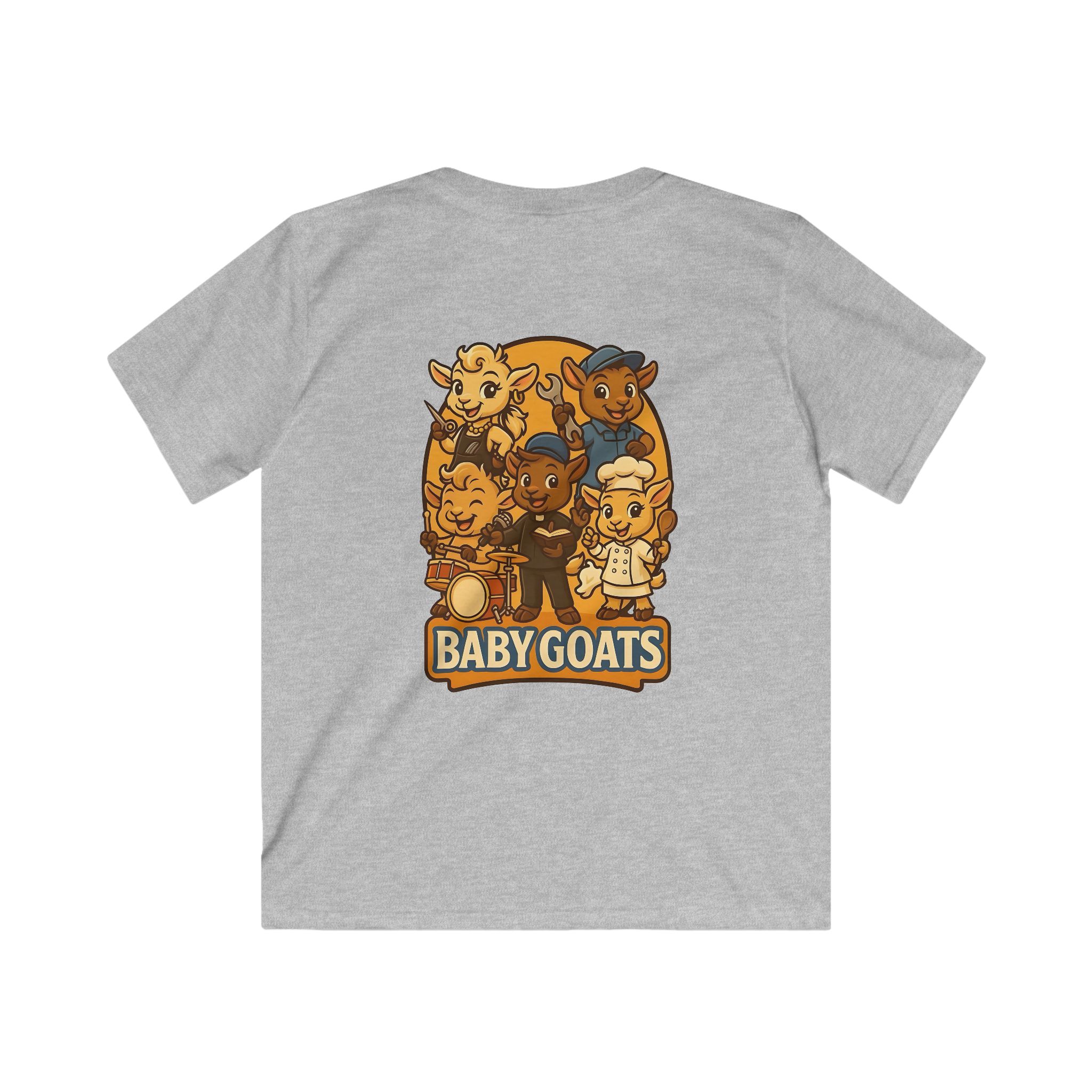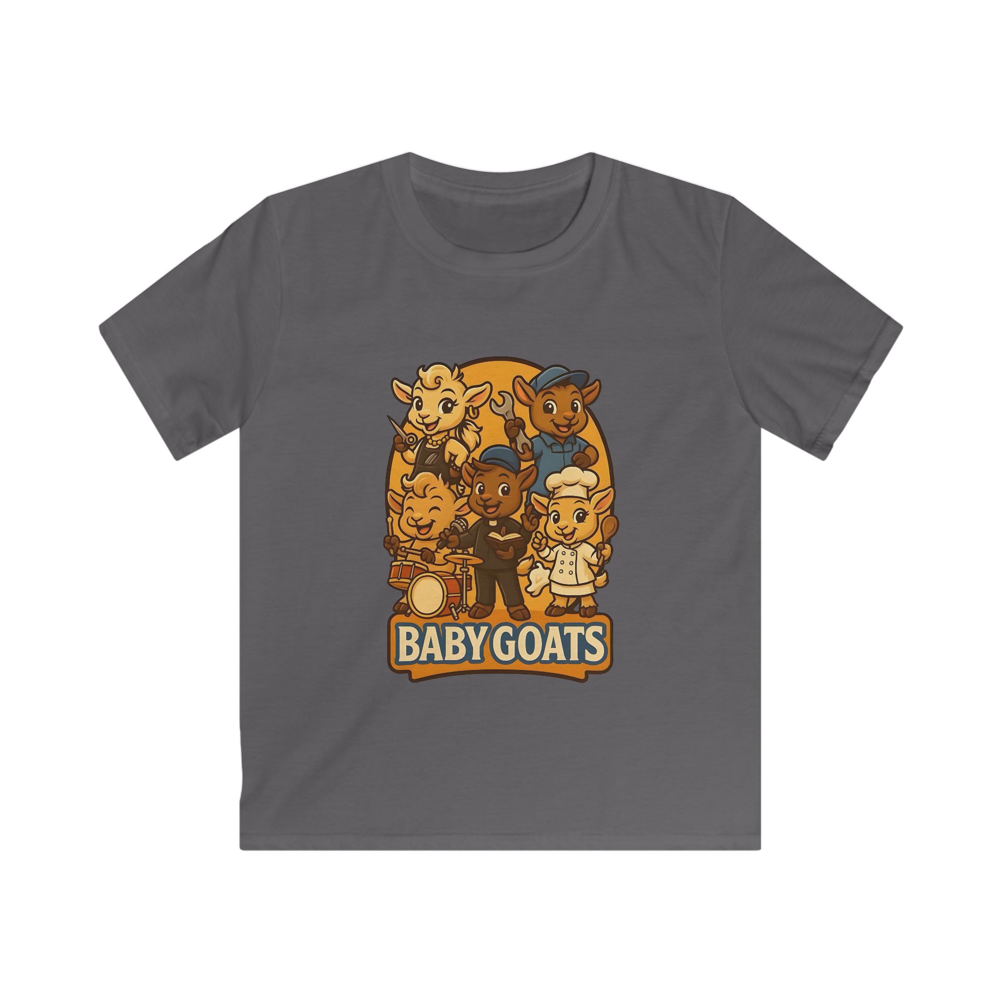 Bright, playful, and made for little explorers — this kids tee brings a band of cheerful baby goats to life. Soft, lightweight fabric sits comfortably against sensitive skin while a classic fit gives room to run, play, and climb. The illustrated goat crew, rendered in warm retro tones, invites imaginative stories and pretend concerts. Wear it to storytime, a family outing, or a day at the park and watch small faces light up when they spot their new favorite shirt. Durable, smooth knit keeps the print crisp through washes, and a tear-away label means no scratchy interruptions during adventures.