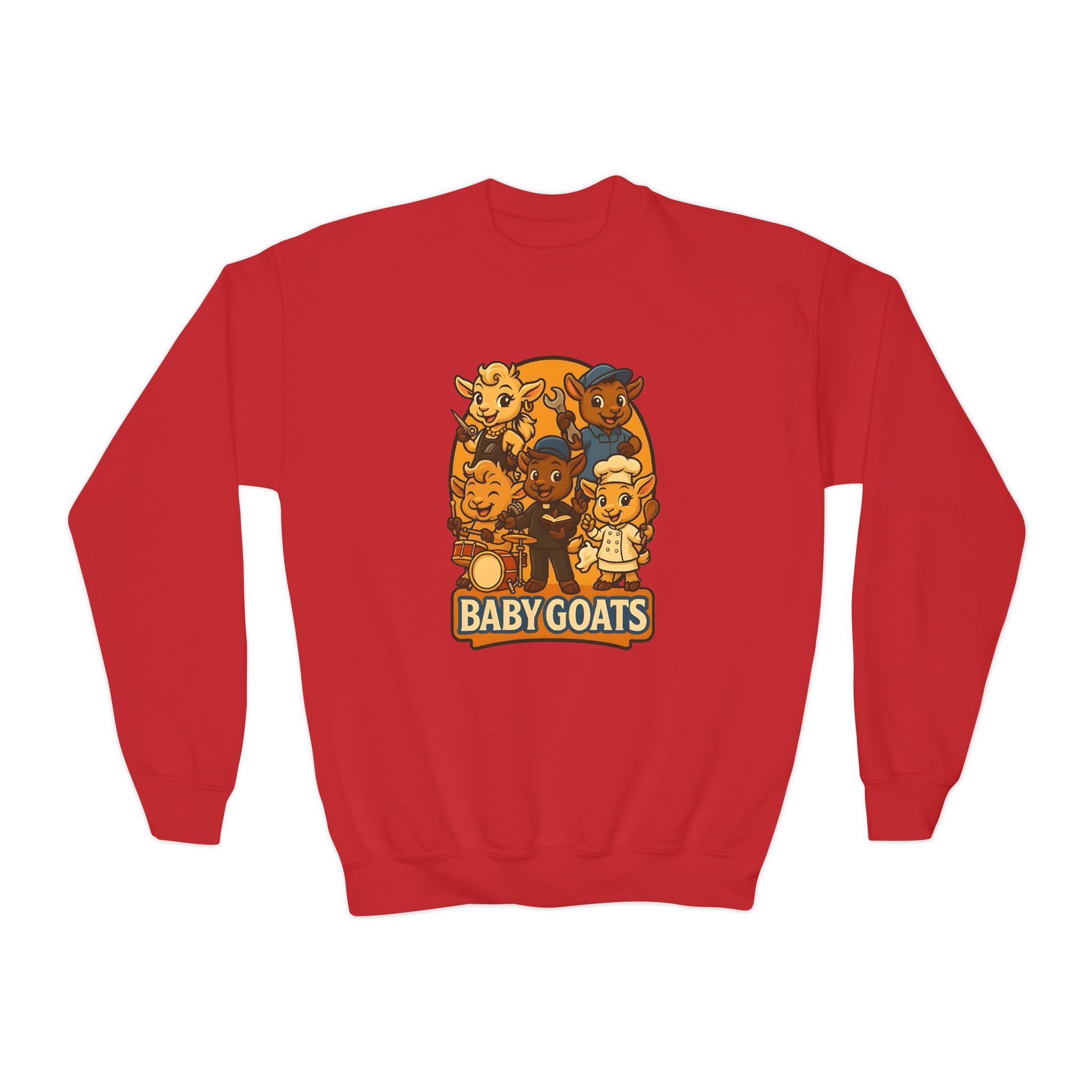 Soft, cozy, and full of quiet joy — this youth crewneck brings a playful herd of baby goats to life in warm autumn tones. The loose, roomy cut lets kids move freely while the medium-heavy knit offers comforting warmth for cool mornings and backyard adventures. Embroidery options on the chest add a touch of texture and handcrafted charm that feels personal and cared-for. Washable and durable, it stands up to playground tumbles and repeated wear while the tear-away label keeps irritation away from sensitive necks. Whether layered over a tee for school drop-off or worn around a campfire story night, this sweatshirt feels like a gentle, familiar hug.