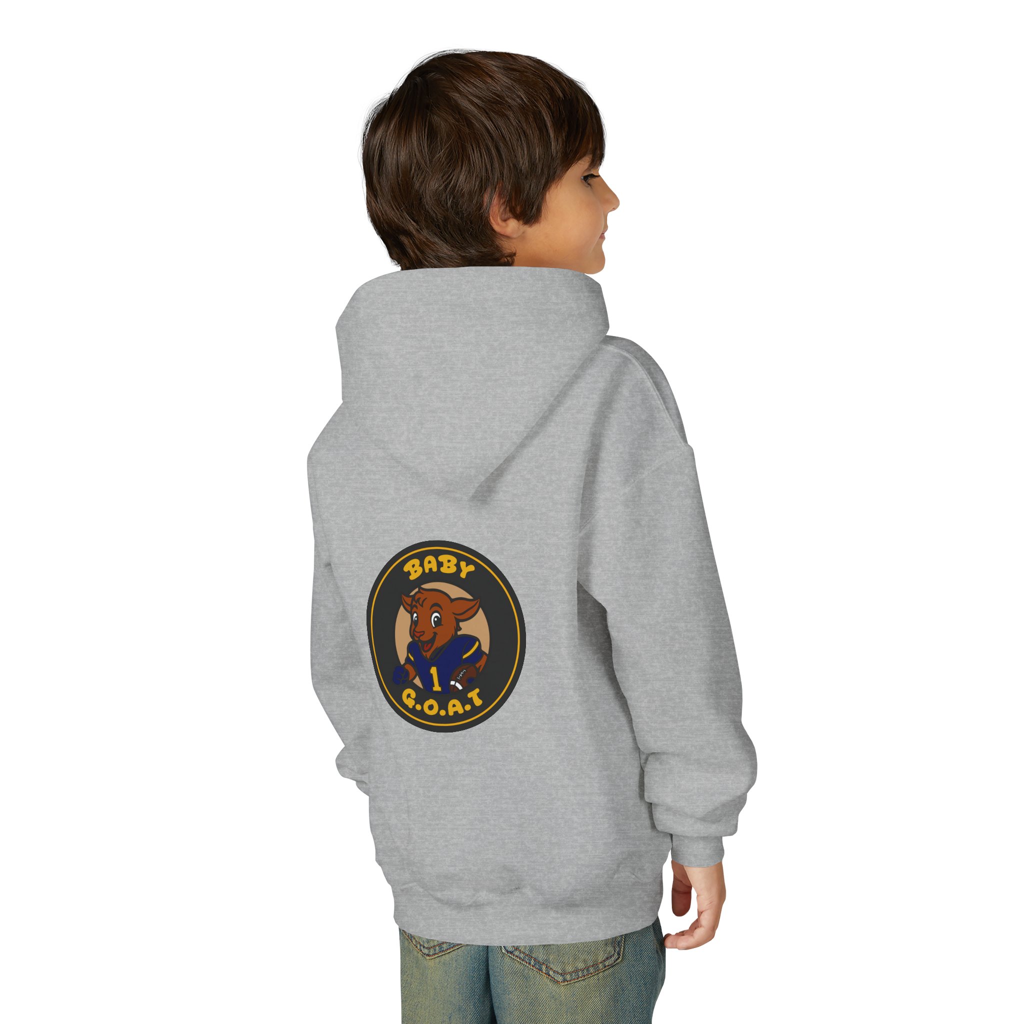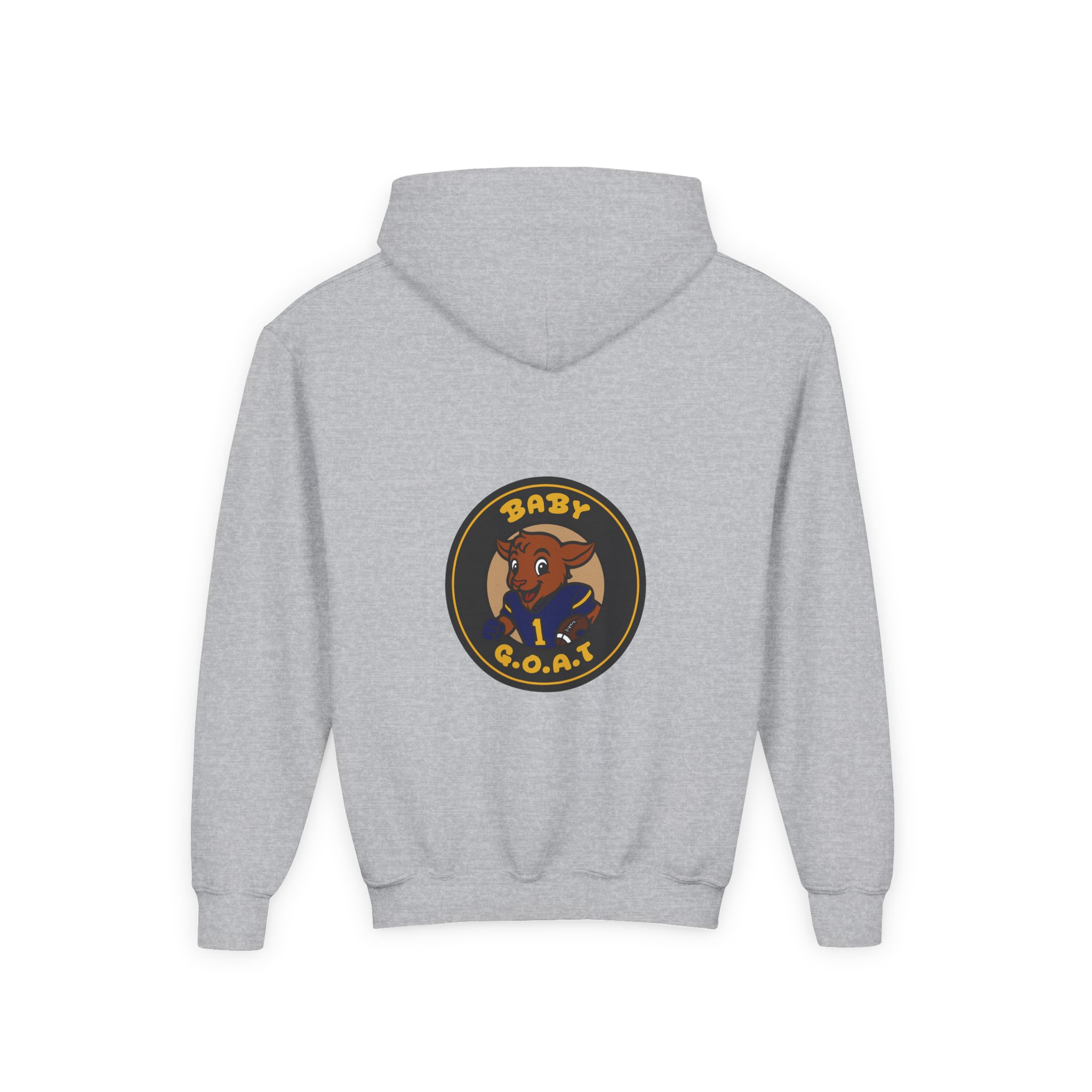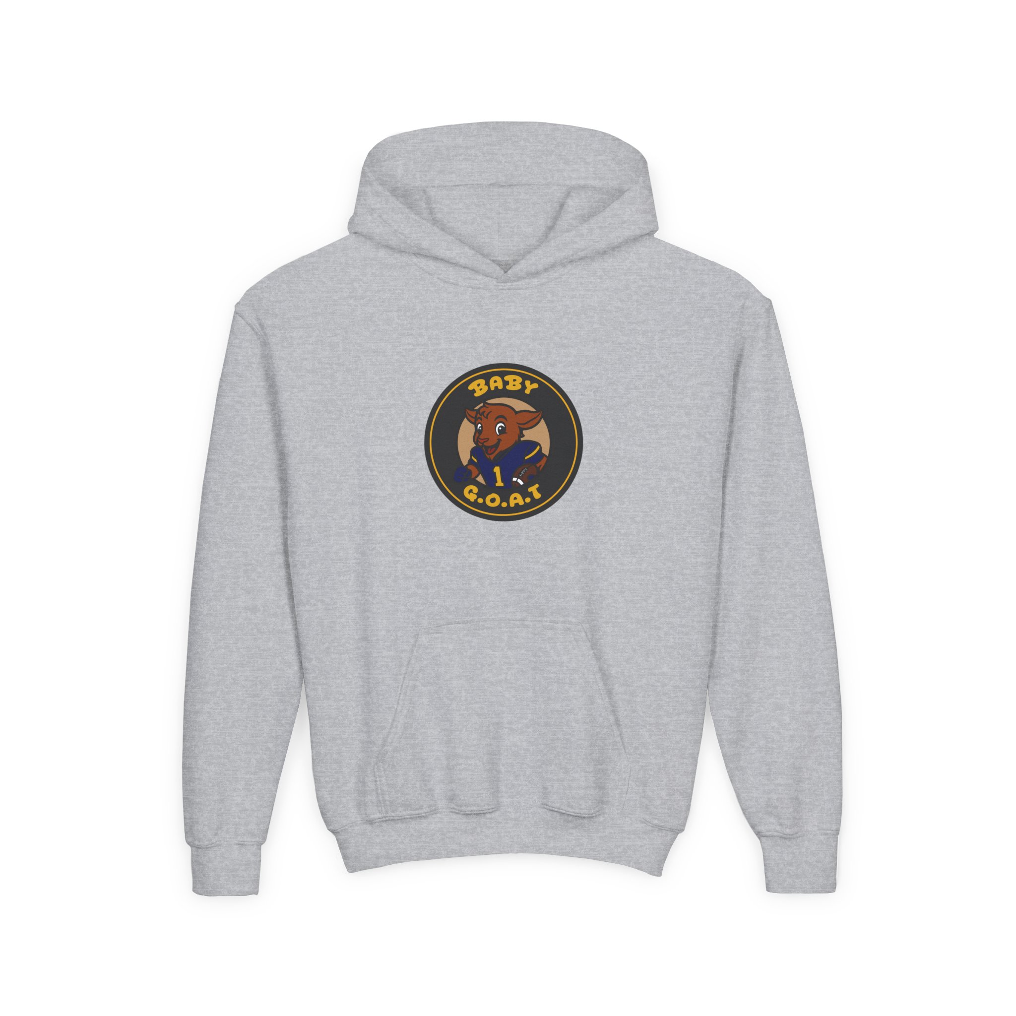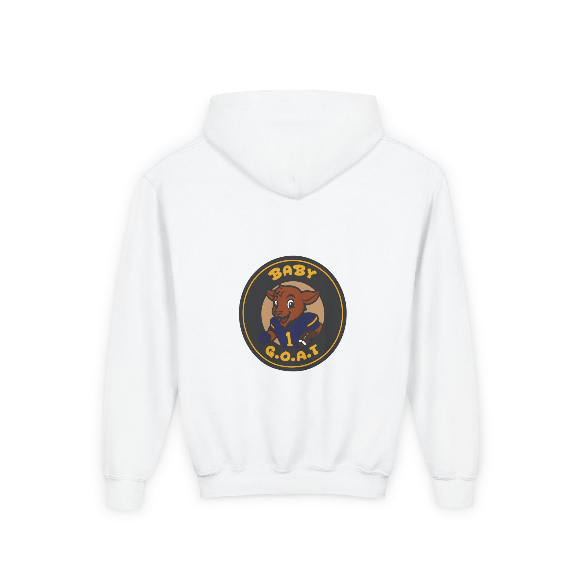 This cozy youth hoodie brings playful swagger to everyday wear. Soft, midweight fabric holds its shape and print through school days, playground climbs, and lazy weekends. The embroidered-feel badge on chest and back shows off a cheeky goat mascot and bold lettering — a little attitude made durable. A roomy kangaroo pocket keeps hands warm and holds small treasures. Breathable but substantial, it layers easily under jackets or becomes the go-to solo layer when temperatures dip. Built with reinforced necktape and resilient fibers, it’s designed to stand up to rough-and-tumble kid life while looking intentionally fun.