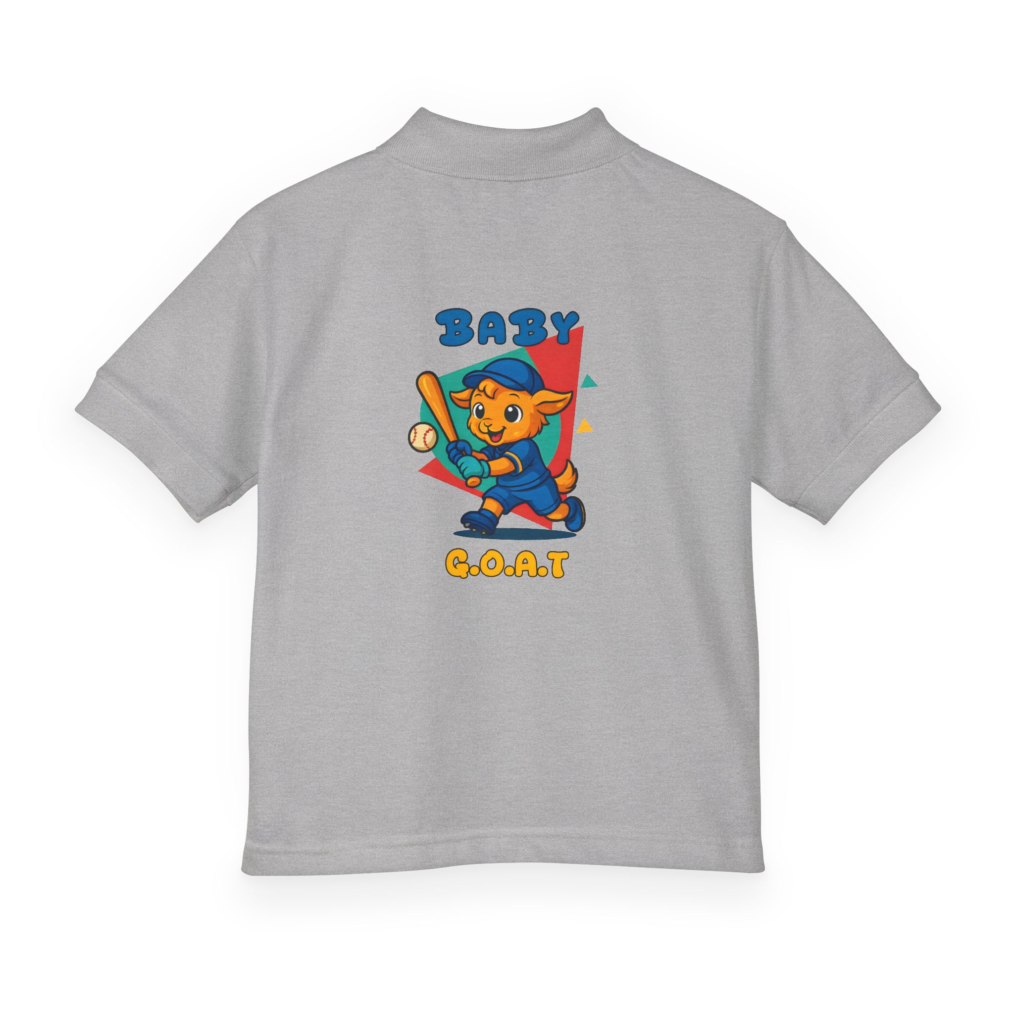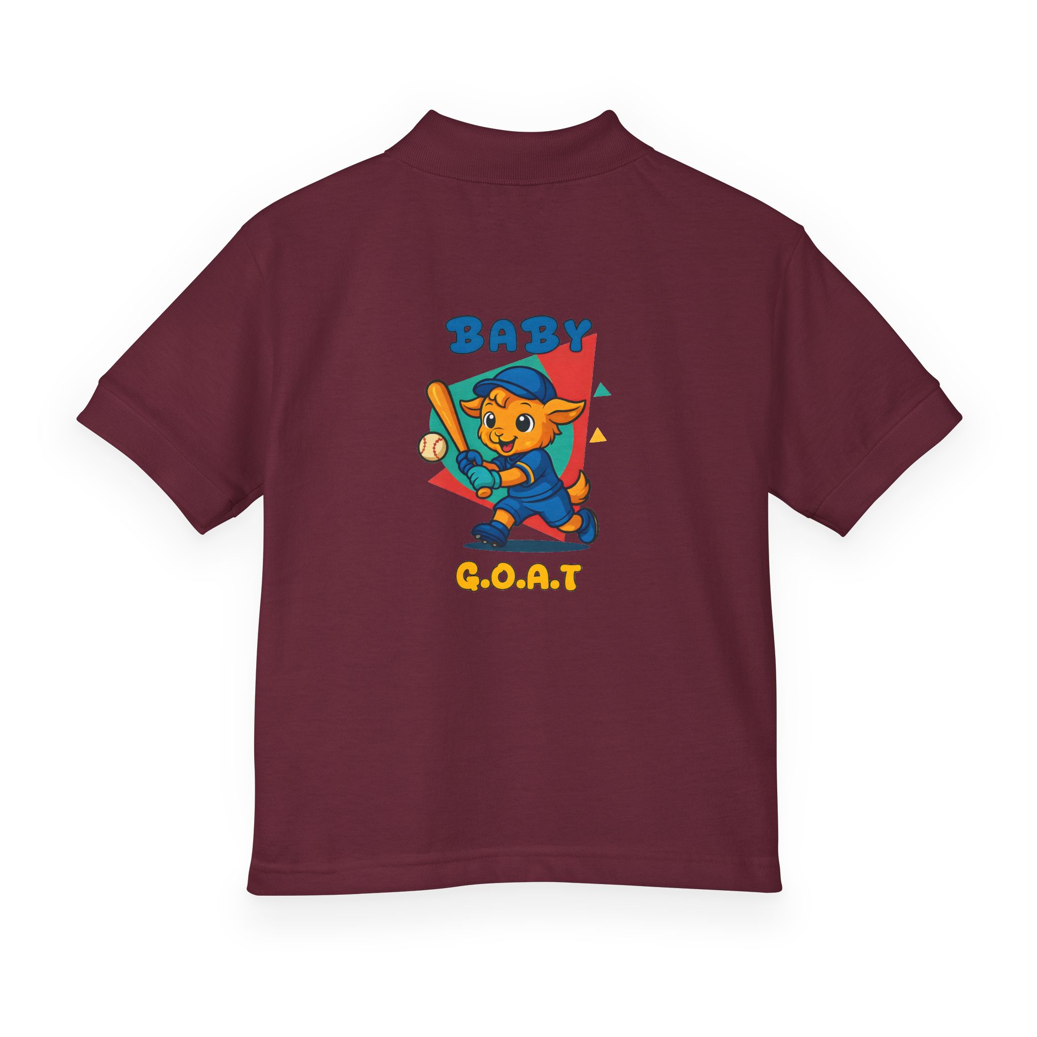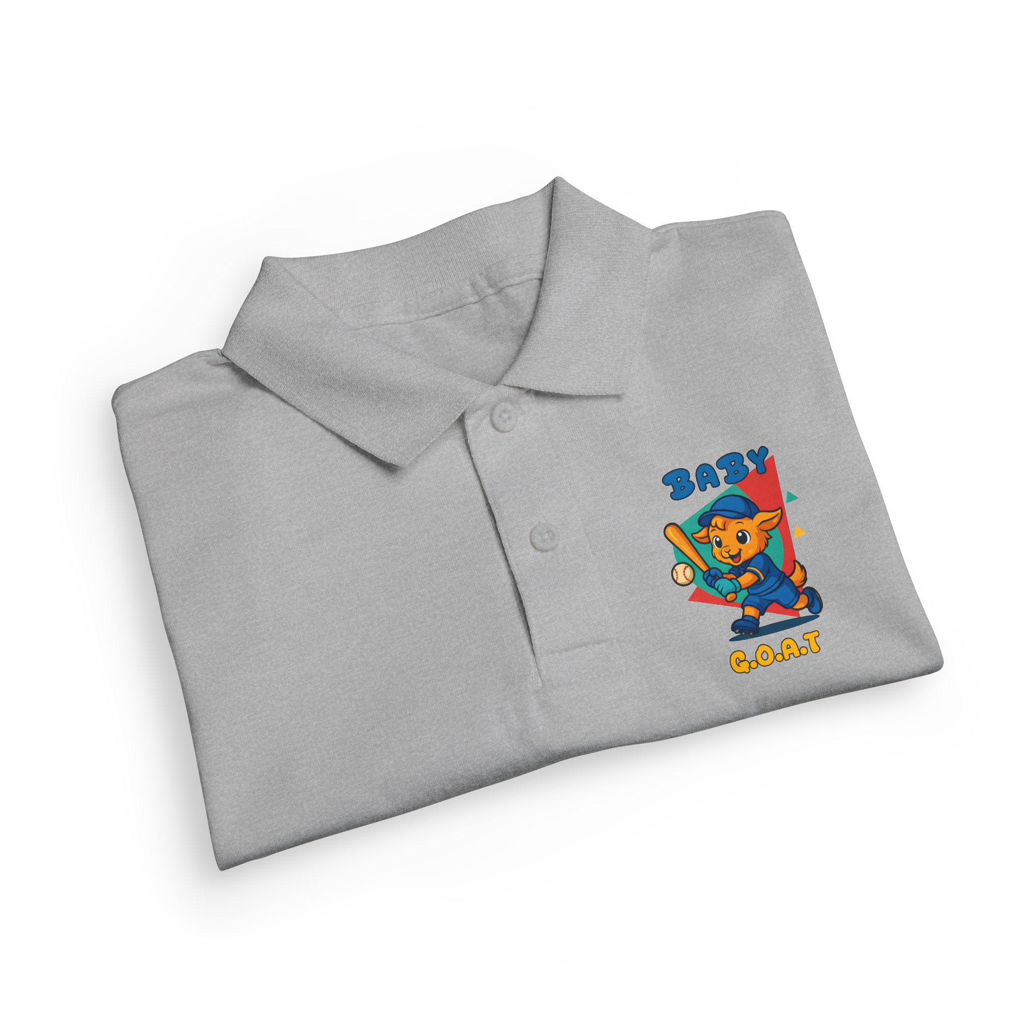 Bright, playful youth polo with a vintage-inspired “Baby G.O.A.T.” illustration that brings sporty charm to everyday wear. The soft, medium-weight DryBlend fabric keeps kids cool and comfortable through recess runs and weekend adventures. A clean three-button placket and contoured collar keep the look classic, while the small chest print and larger back graphic add bold, retro energy. Built with durable spun fibers and OEKO-TEX low-impact dyes, this shirt stands up to play and washing while being gentler on the planet.