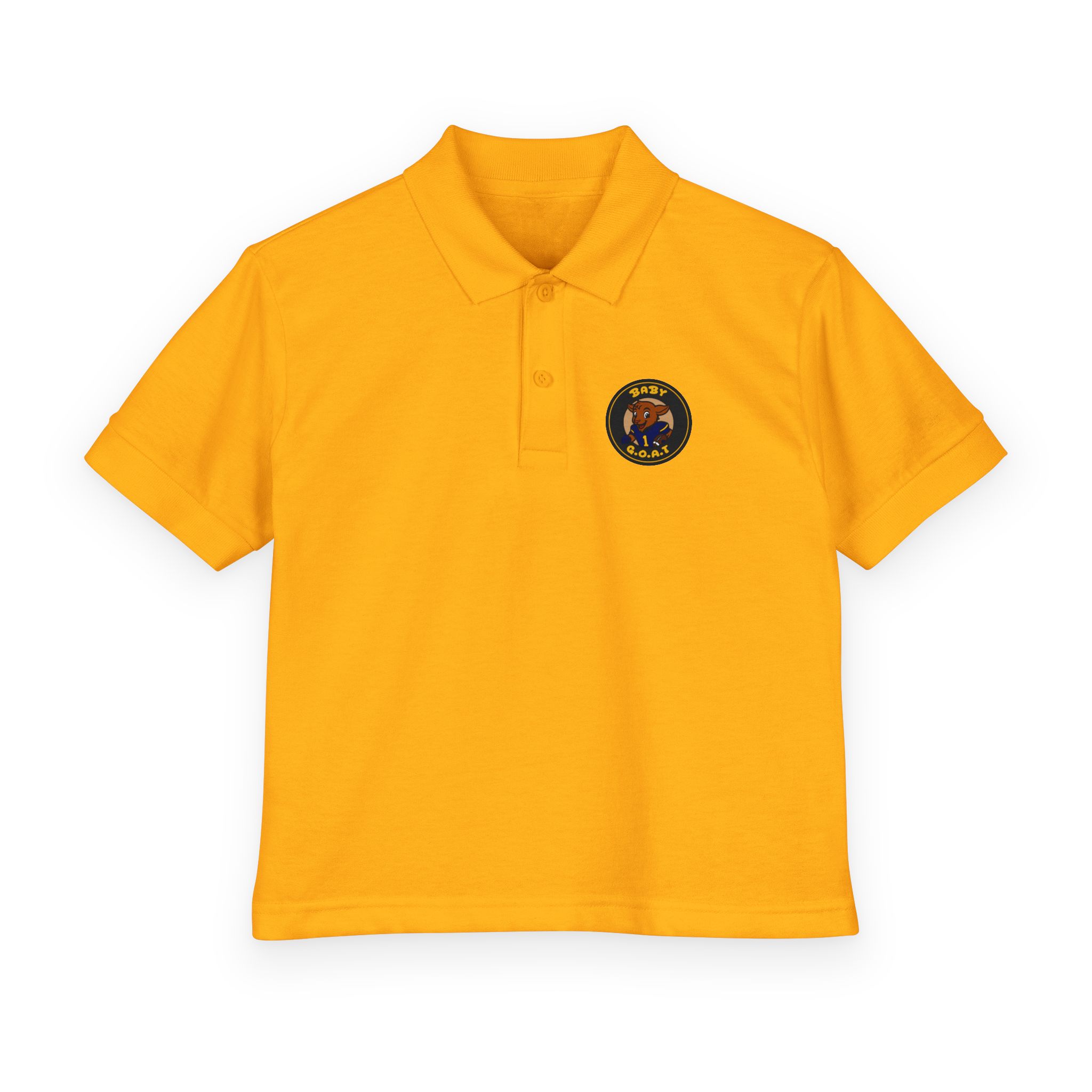A soft, breathable youth polo designed for everyday wear and playful style. This medium-weight 50/50 cotton-poly polo uses DryBlend® moisture-wicking technology to keep active kids cool and comfortable while holding prints in crisp, lasting detail. A contoured collar, three-button placket, and clean finished cuffs lend a classic polo silhouette, while a small embroidered-like patch design on the chest and a larger badge on the back add character without overpowering. OEKO-TEX certified low-impact dyes and sustainable manufacturing give this shirt a kinder footprint. It sits well in school wardrobes, weekend adventures, and casual family outings—comfortable, durable, and ready for the next play session.