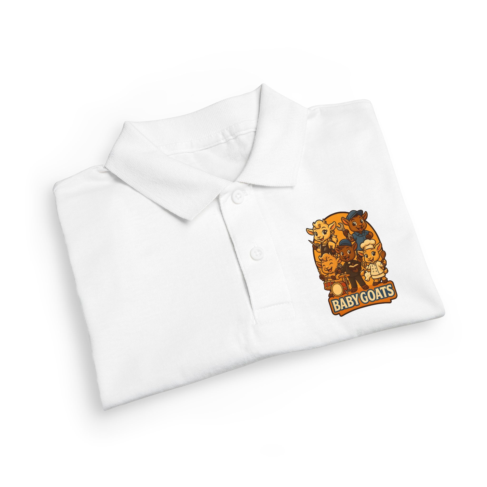 Youth Polo — Cute ‘Baby Goats’ Kids Polo Shirt (Embroidered Chest & Big Back Print)