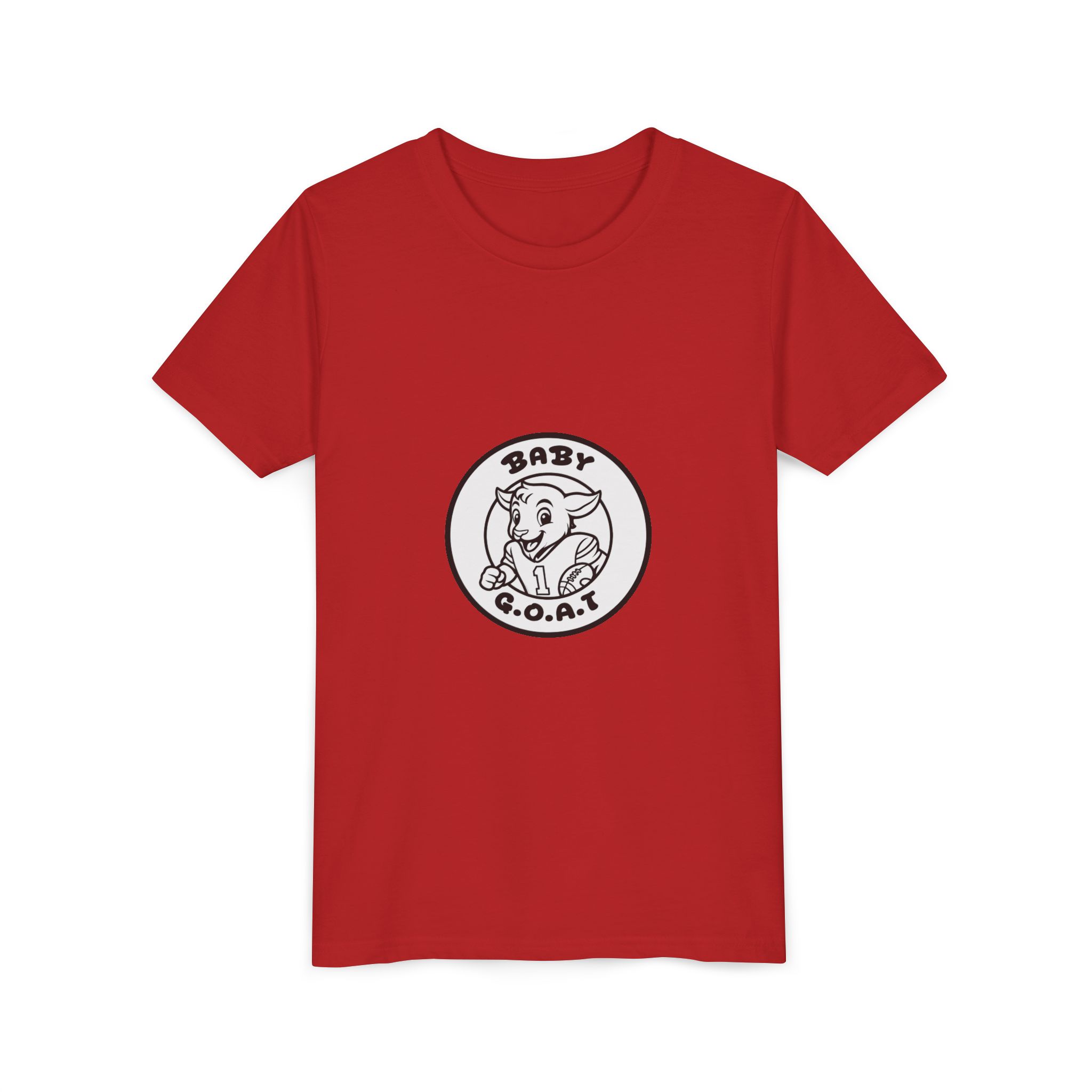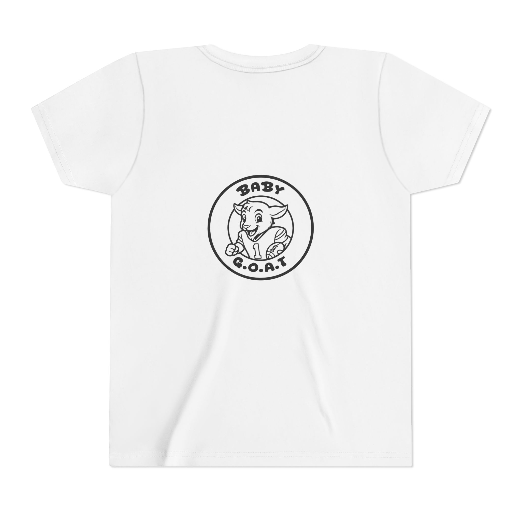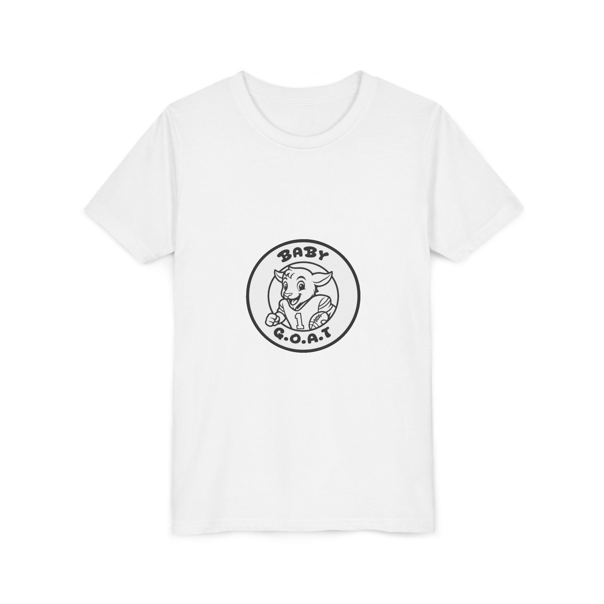 This youth tee brings playful confidence to everyday wear. Soft, lightweight cotton and a clean retail fit make it comfortable for active kids. The front-and-back line-art badge shows a cheeky baby goat inside a circle with “BABY G.O.A.T.” — a subtle nod to energy, confidence, and childlike mischief. The minimal monochrome print keeps the look versatile and easy to layer under hoodies or jackets. Comfortable ribbed collar, shoulder tape, and tear-away label mean it keeps shape and stays scratch-free through playdates, school days, and weekend adventures.